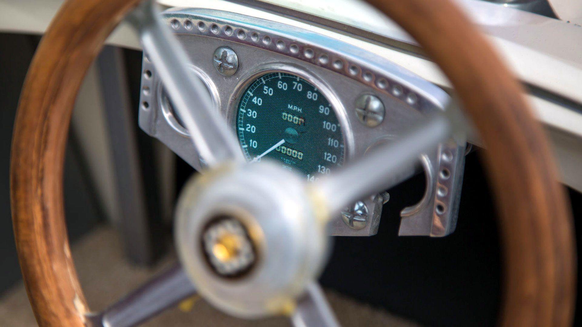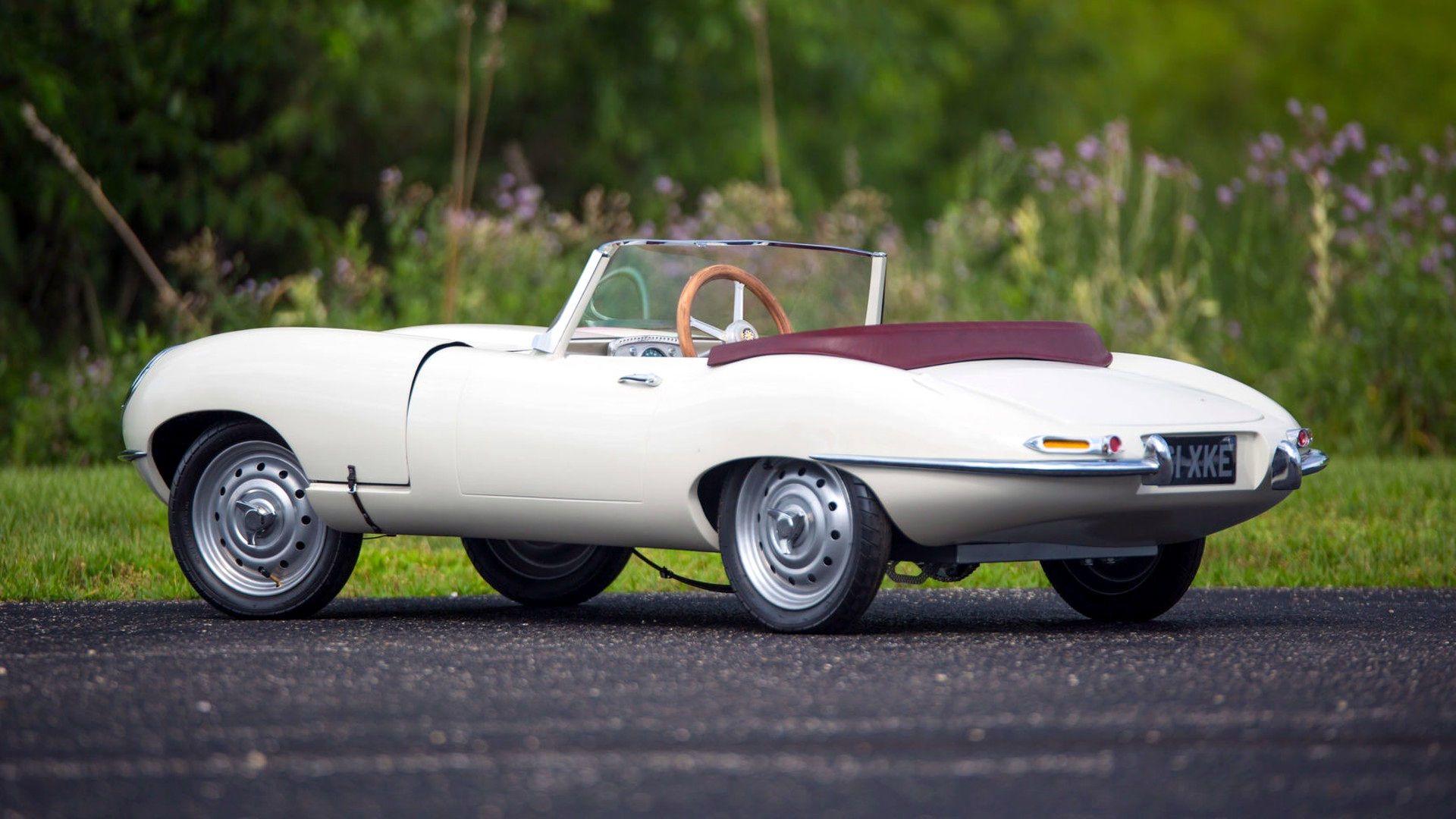 Zadnja, a verjetno najbolj všečna je replika Jaguarja E-Type från året 1961. Zunanjost je odeta v klasično bež barvo, ki jo lepo dopolnjujeta rdeča notranjost in leseni volan. Det driver honom gasmotor, v nasprotju z drugimi replikami, pa ima ta celo fungerande strålkastare. Pričakuje se, da bo cena tega Jaguarja na dražbi dosegla med 8,5 och 13 tisoč evri.