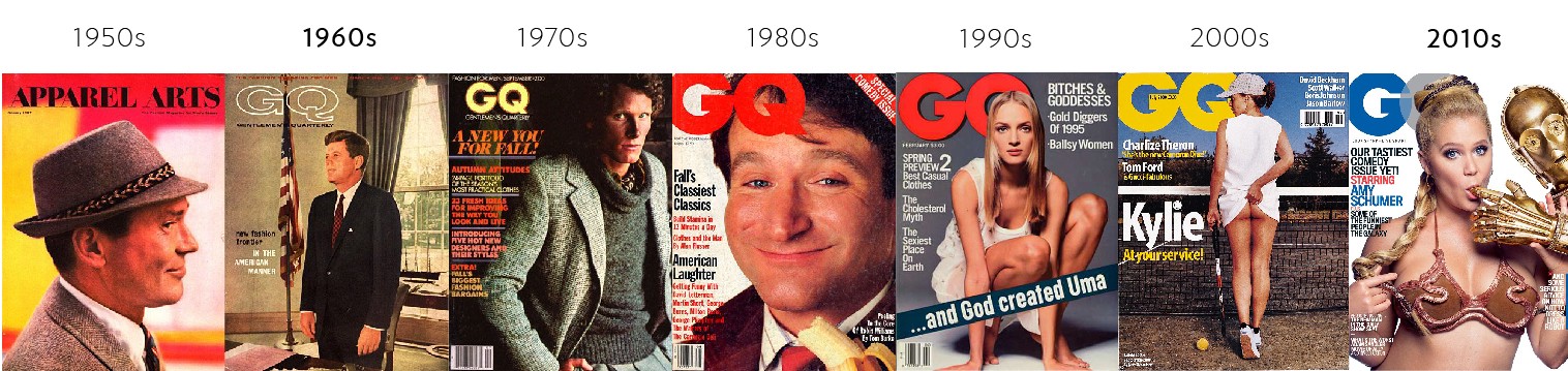 Retrospektiva razvoja naslovnic svetovno znanih revij je fascinanten vpogled v evolucijo nekaterih najbolj znanih vplivnih in popularnih revij, ki so in še vedno tako ali drugače narekujejo trende in vplivajo na naša življenja, pa najsi bo to lahkoti Kosmopolitisk, malce manj lahkotni Vogue ali ”velterski” Team.