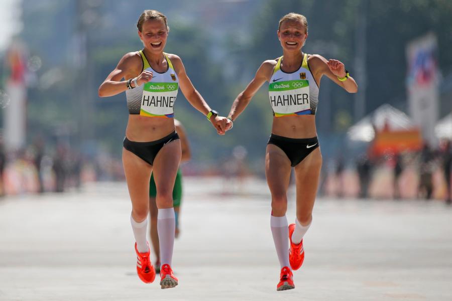 Tvillingarna Anna och Lisa Hahne, som är på OI Rio 2016 överskuggade 30-åringarna med sin ankomst i mål Estniska trillingar – dessa blev de första trillingarna att tävla i maraton vid OS – och ganska mycket bättre nordkoreanska tvillingar Hye-Song och Yhe-Gong Kim (de slutade 10:a och 11:a i maraton) genom att hålla hand istället för sympati väckte kritik.