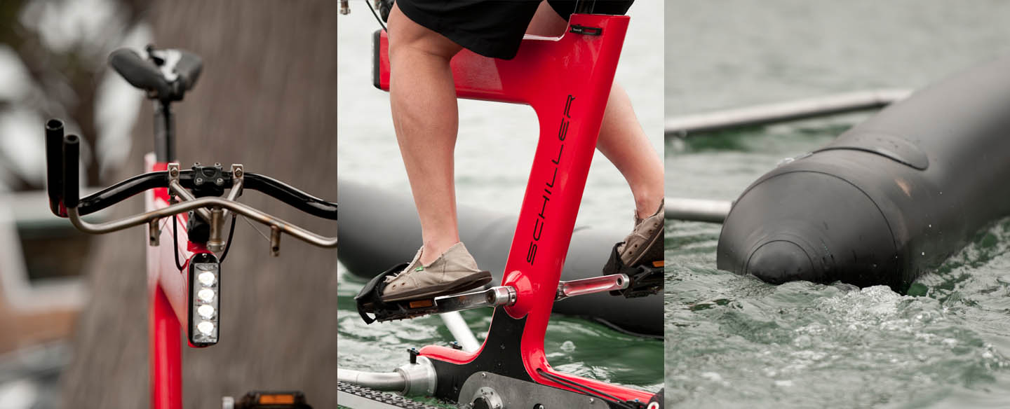 Cyklister de kommer att vara mer än nöjda med vattencykeln Shiller X1, eftersom de kommer att kunna introducera viss mångfald i sin utbildning. Även om varje åktur erbjuder en unik upplevelse, kan cykling vara en verklig smärta under varma sommardagar. Men om dåligt och kallt väder driver dem till cylindrar och utbildare, flytta dem inte till luftkonditionerade rum när det är för varmt. Tja, i sådana fall är X1 som vatten för kvarnen, eftersom den kan "land” hjul de går över till vatten och genomför träning under mer humana förhållanden. X1 är nämligen till stor del en kopia av de markbundna versionerna, förutom det aluminiumram är inte fäst vid ringarna eller hjul men på två uppblåsbara ponton. För som vi sa tidigare är X1 från 'midjan och upp' ett skott av en kroncykel.