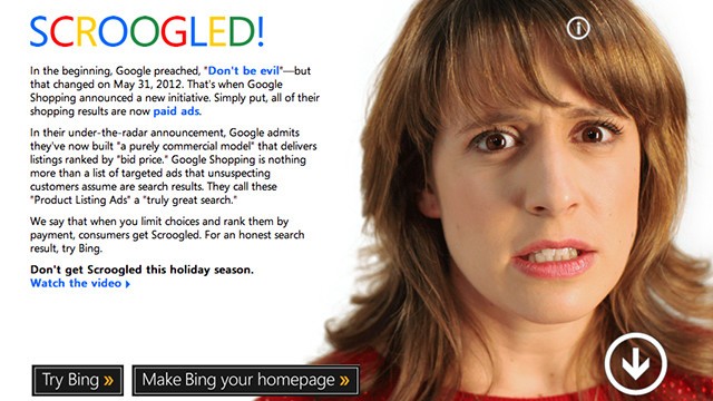 Tak napad na Google ni novost iz strani Microsofta. Kljub porabljenim milijonom Bing sökmotor in e-poštna storitev Outlook ne dosegata uspeha Googla in z namenom, da se to spremni, so najeli Marka Penna, znanega kot vodjo politične kampanje Billa in Hilary Clinton. Začeli so zelo agresivno in obtožili Google vdiranja v zasebna sporočila poslana preko Gmaila in nepoštene prikaze iskanih rezultatov za plačljive izdelke ter ustvarili spletno stran »Scroogled«, kjer so objavljeni vsi anti-Google oglasi.