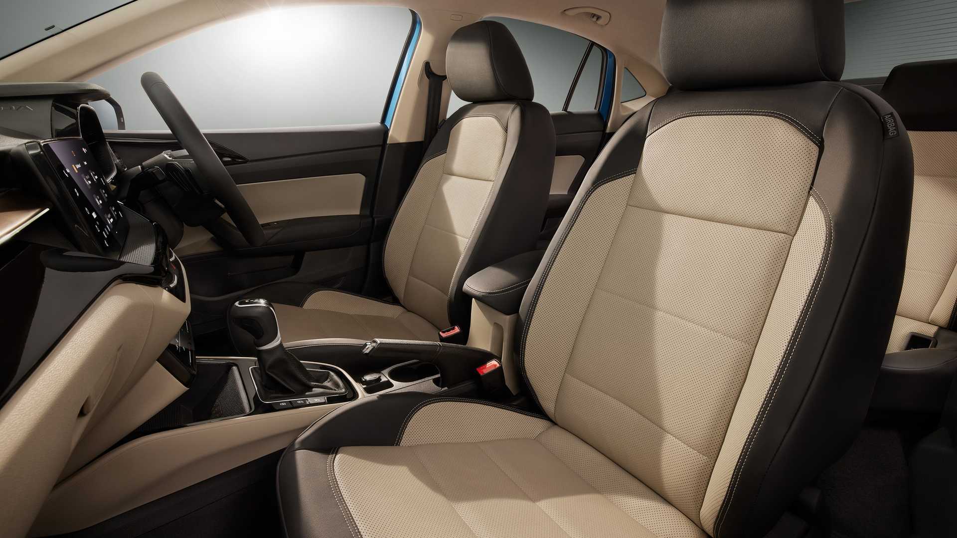 Interiören är en starkt härledd kabin av Fabia-modellen. Vilket förvisso är en stor förbättring jämfört med gamla Rapid och den ser också mer exklusiv ut än Skodas andra indiska bil, Kushaq compact crossover.