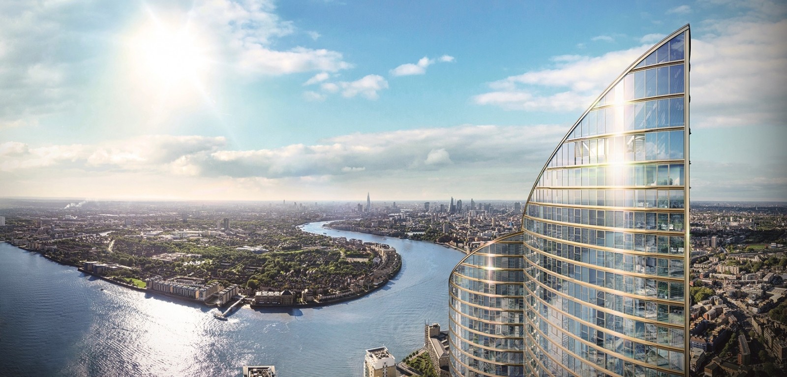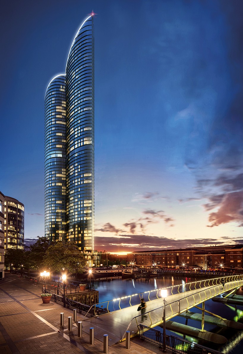 235 meter hög byggnad kommer att ligga i Londons Isle of Dogs-område och kommer att inkludera 765 lyxlägenheter. Invånarna kommer att ha tillgång till en pool, gym, biograf och cocktailbar. Priset för en ettrumslägenhet blir minst 660 tusen euro.