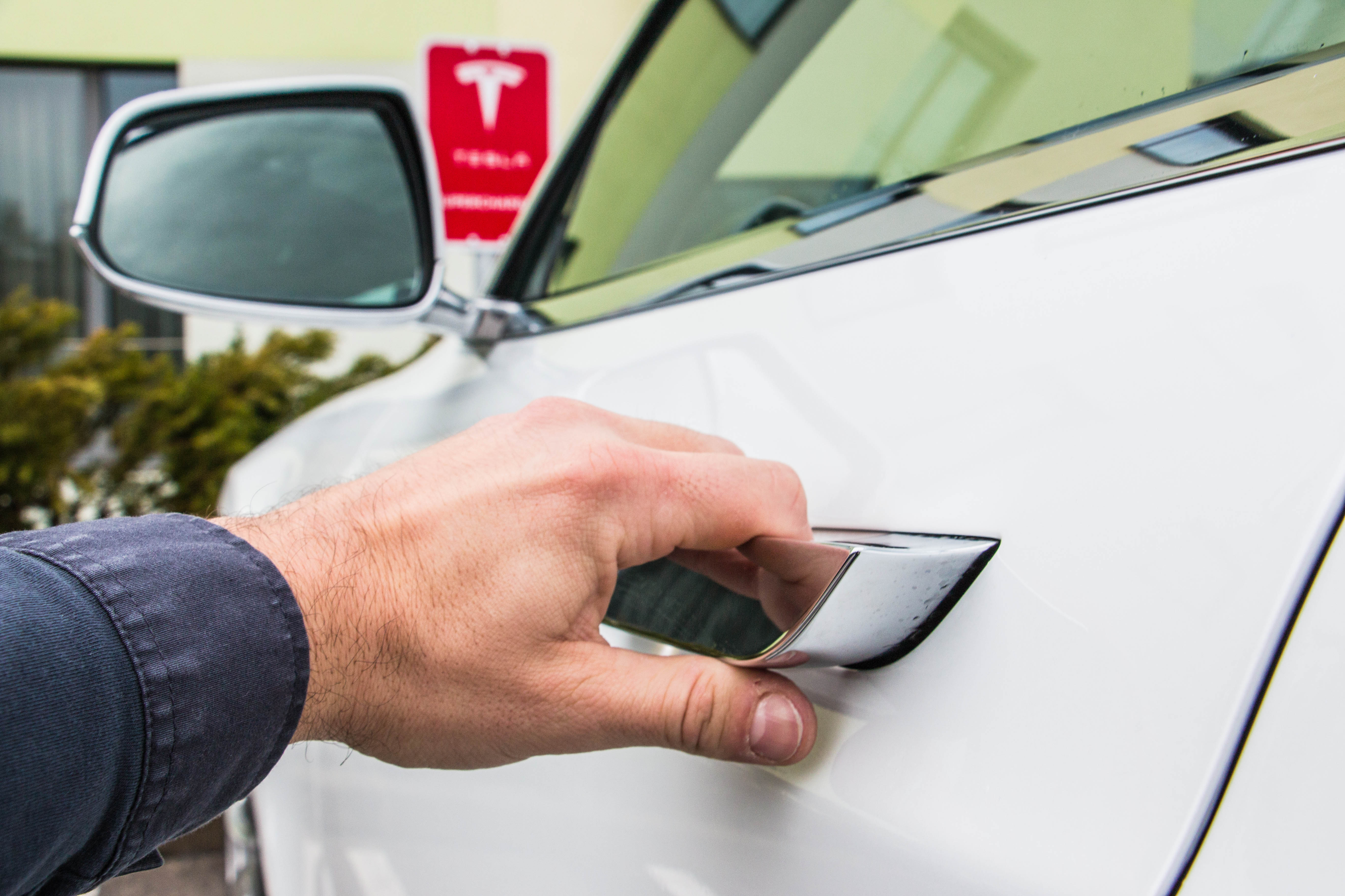 Exteriör Tesla är helt underordnad luftmotståndskoefficient och för närvarande presenterar Tesla bilen med den lägsta luftmotståndskoefficienten. Det är också därför den är något mer konventionellt utformad, vilket inte betyder att det är tråkigt. Fordonets handtag, eller krokar, är intressanta, eftersom de "sjunker ner" i karossen och blir en del av fordonets "kaross". Allt i syfte att minimera motståndet.