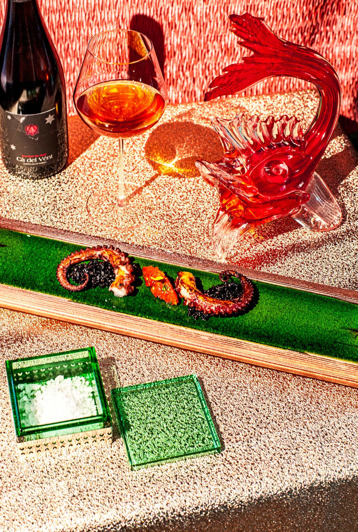 Längst upp till vänster hittar du delikatess med färska ingredienser och en bar, ett par bord för stamgäster och vinbutik, där det finns tid för ett kort samtal och att öppna en flaska. Delikatessbutiken öppnar omedelbart på morgonen. kl. 8:00 och stänger kl. 21:00, när rampljuset flyttas till klubben.