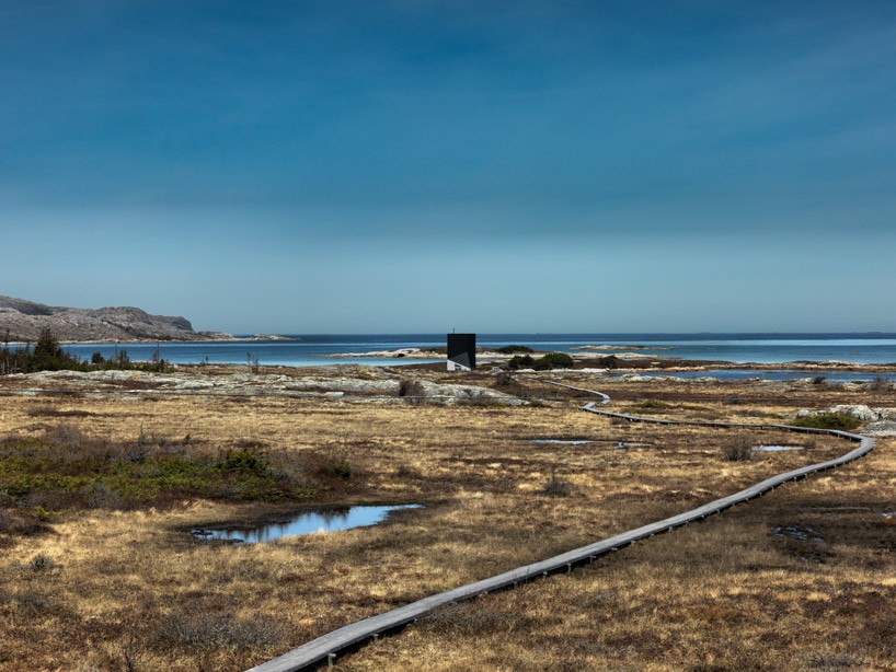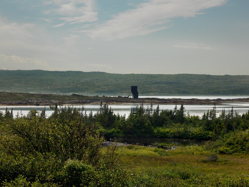 50 kvadratmeter stor tillflykt Tower Studio Den har en utomjordisk arkitektur som är helt enkelt fantastisk. Den ligger på Fogoön, som anses vara ett av de första bebodda områdena i Kanada och är inte mindre fascinerande. Saunders Arkitektur placerade en svart silhuett på sin klippiga strand ovanliga geometriska former med bara ett fönster, som är både ett fönster och ett takfönster. Vi listar tre av dem golv och är inte tillgänglig med bil. Den nås via en slingrande stig från huvudvägen. trästig, som reser sig över träsket och därmed skyddar lavekosystem.