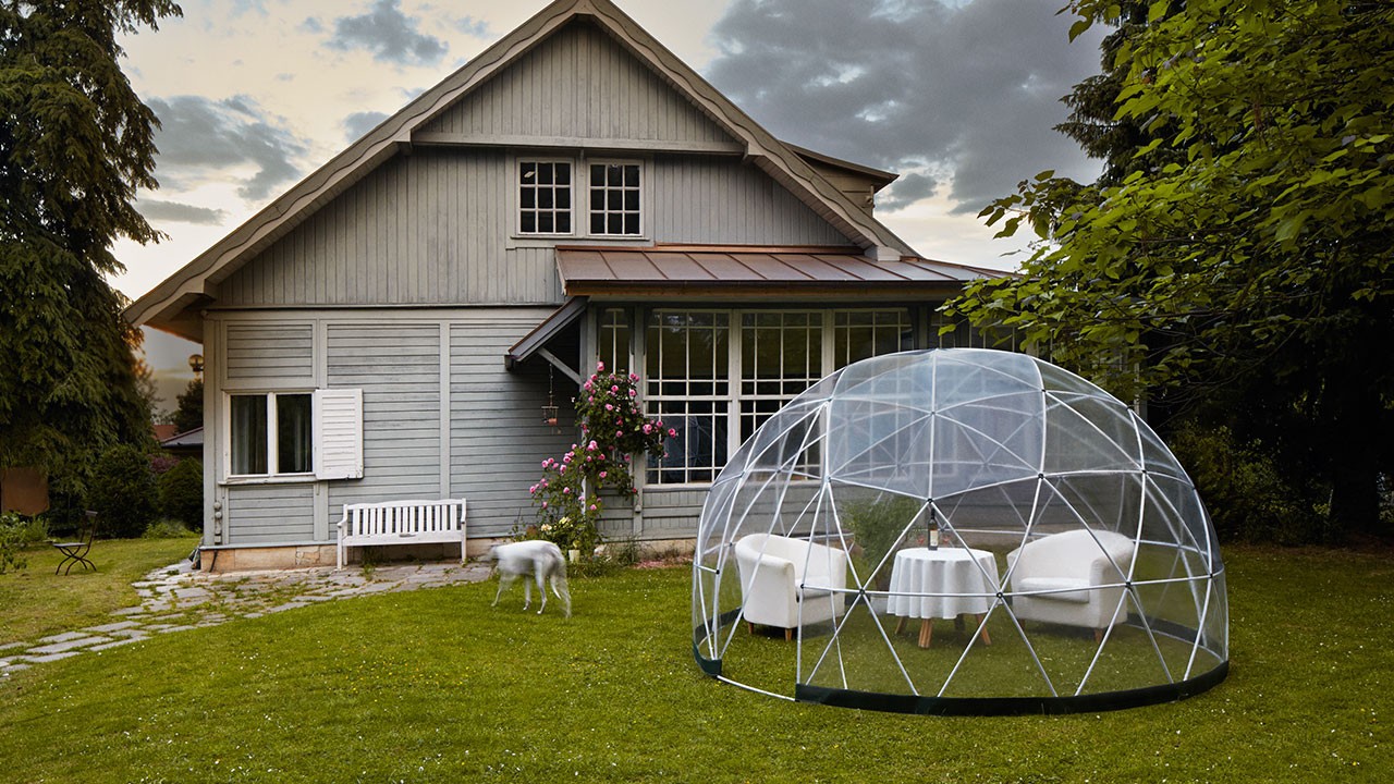Garden Igloo 360 är en geodetisk kupol för trädgården, som få trädgårdstillbehör kan konkurrera med. Och här pratar vi inte om tomtar, lyktor etc., utan om en swimmingpool, basketplan, gästhus, ... Den multifunktionella en gång-genomskinliga-en-gång-inte-kupolen kan vara en vinterträdgård, ett tak, ett barnhus, ett växthus, en trädgårdsberså, ... användningsmöjligheterna begränsas bara av din fantasi. Det är ett praktiskt modernt konstverk som varje trädgård längtar efter och, även om du inte visste det förrän nu, så gör du det också.