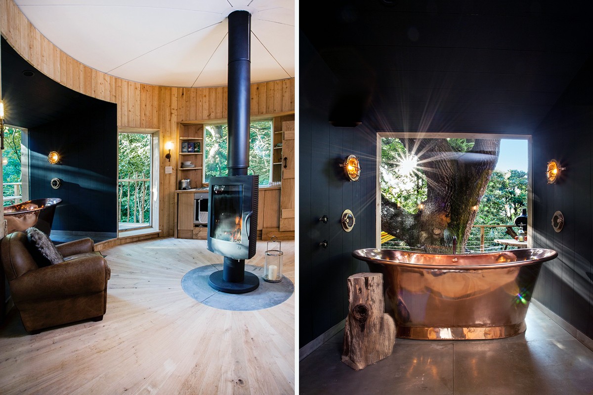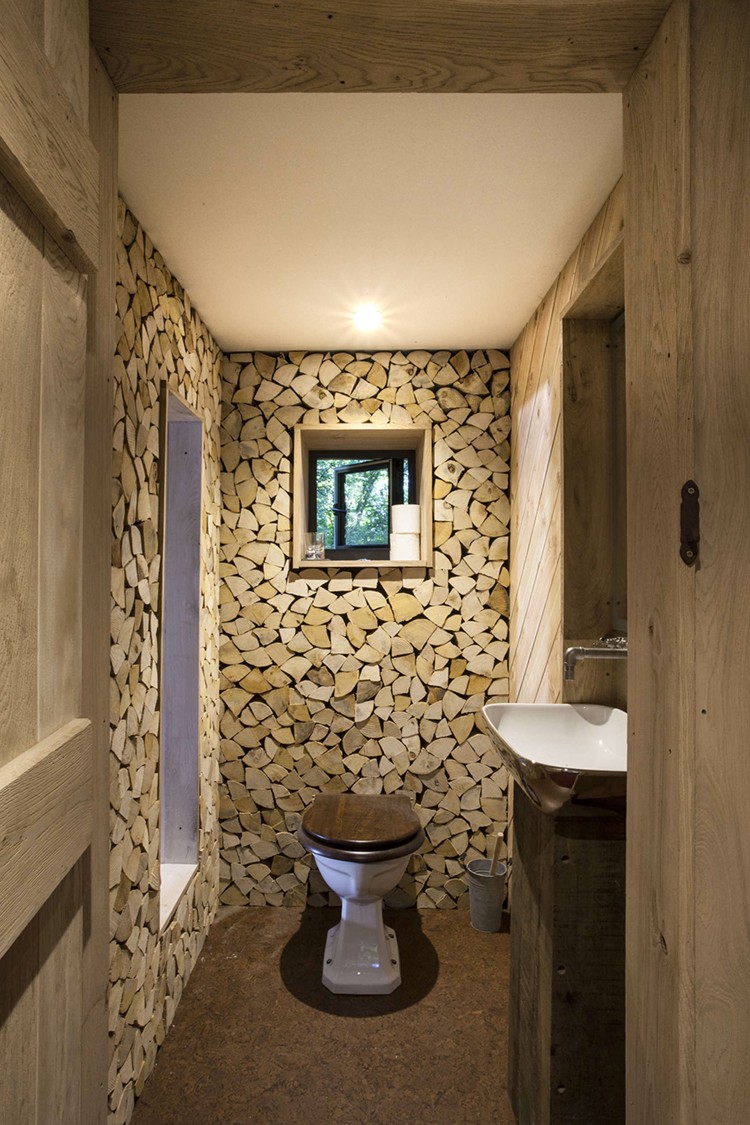 Denna trädkoja ligger i skogen i Dorset, England. Den byggdes av snickaren Guy Mallinson och är gjord på ett "grönt" sätt. Den upphöjda bungalowen är byggd av lokala material och smälter in i landskapet.