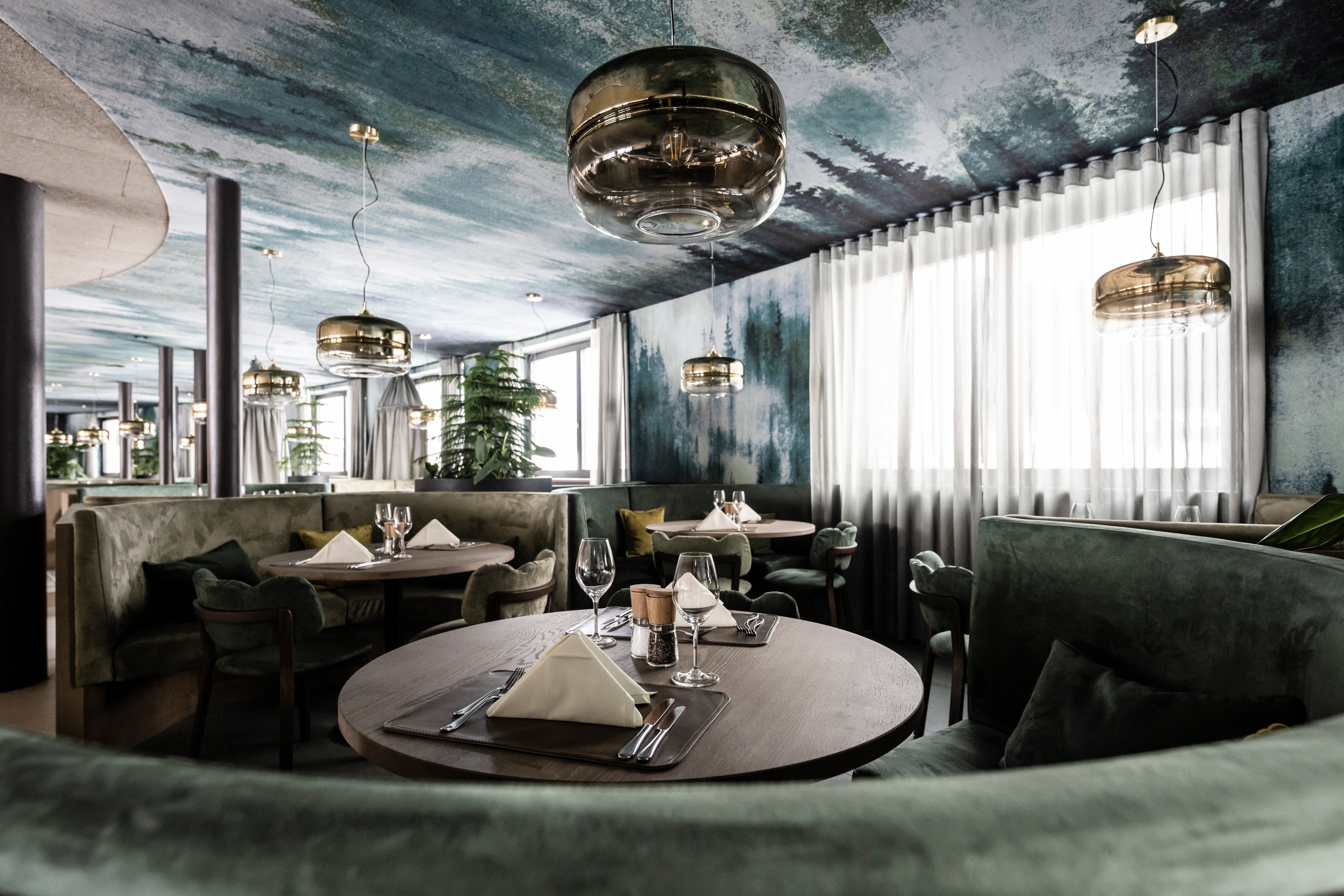 De finns över hela komplexet gröna ytor sammanvävda för att skapa kontinuitet med de omgivande skogen. Detta tillvägagångssätt av hållbar design betonar en stark koppling mellan hotellet och det alpina landskapet. Dessutom renoverades fasaden på hotellet med naturliga trämönster och ett monokromt schema som påminner om estetiken i traditionella alpina lador.
