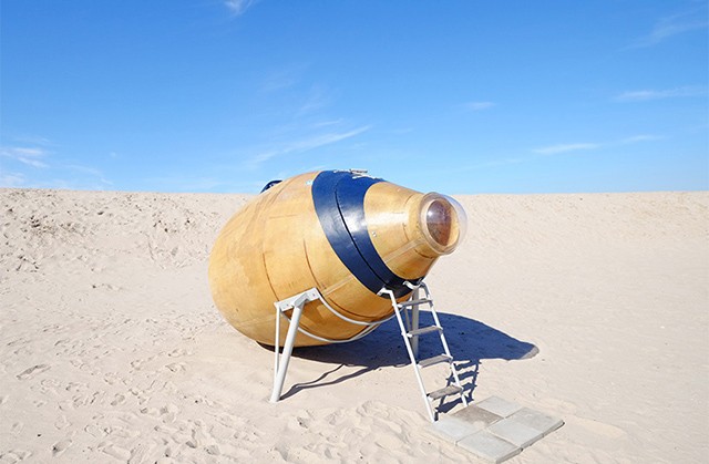 Nej, det här är inte någon skämtby byggd i öknen av utomjordingarentusiaster. Detta är Urban Campsite Amsterdam, ett semesterläger med ovanliga futuristiska kapslar som "växte upp" vid Amsterdams kust i år.
