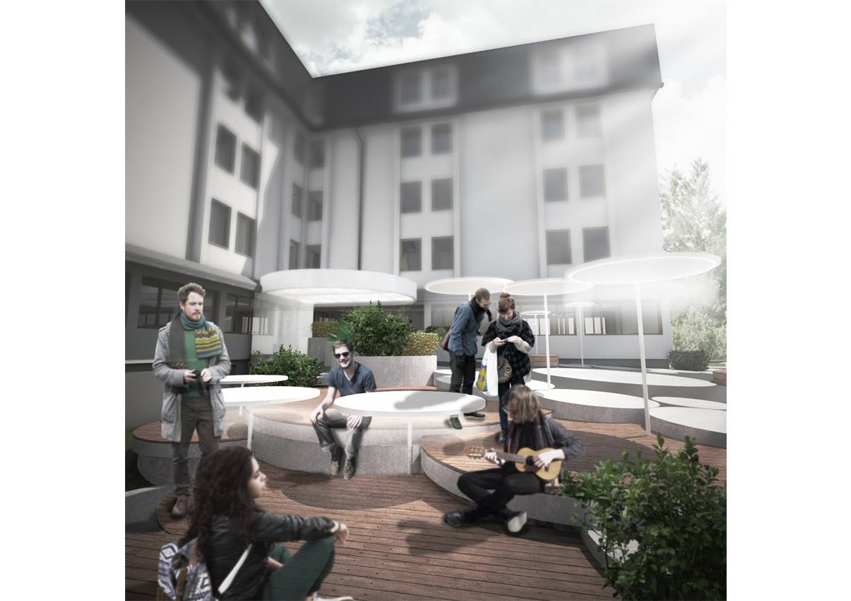 Arkitektkontor Världen däremellan grundades 2010 i Ljubljana och samlade unga arkitekter vars huvudmål är att förvandla dåligt designade utrymmen och skapa nya "mellan" utrymmen. De koncentrerar sig främst på utbildningslokaler, och "däremellan" representerar en stor designpotential för dem, genom vilken de vill lyfta fram själva utrymmets kvaliteter. Deras projekt är full av starka färger och lekfulla former och intressanta rumsliga lösningar. Kärnan i Svetkontoret representeras av tre arkitekter av den yngre generationen Jure Hrovat, Ana Kosi och Ana Kreč, och vid behov utökas och kompletteras teamet. De kan skryta med många genomförda projekt, publikationer och utmärkelser. De förbereder just nu en presentation i gruppen Designmånader, där de är inbjudna att delta i till Muse-projektet. För detta ändamål måste arkitekterna designa en utställningslokal där tre leverantörer kommer att presentera sig - en konstnär, en möbeldesigner och en antikaffär.