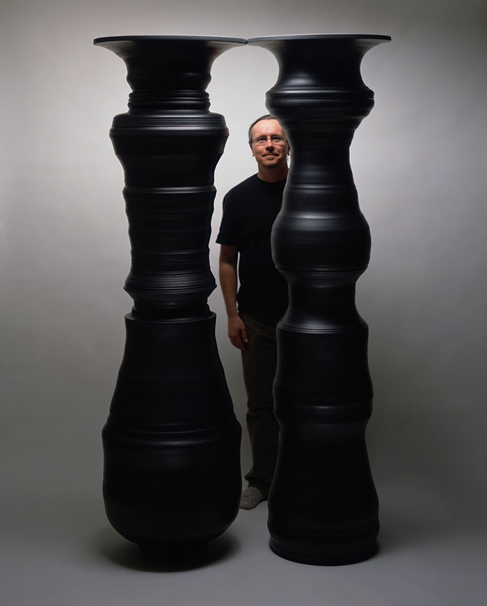 Så att du verkligen kan beundra verken av keramikern Greg Payce, du måste Läs mellan raderna eller i detta fall mellan vaserna. När hans vaser i olika former arrangera bredvid varandra, utrymmet som skapas mellan dem ritar olika bilder, från ett ansikte, en kvinnas kropp, en orm, etc.