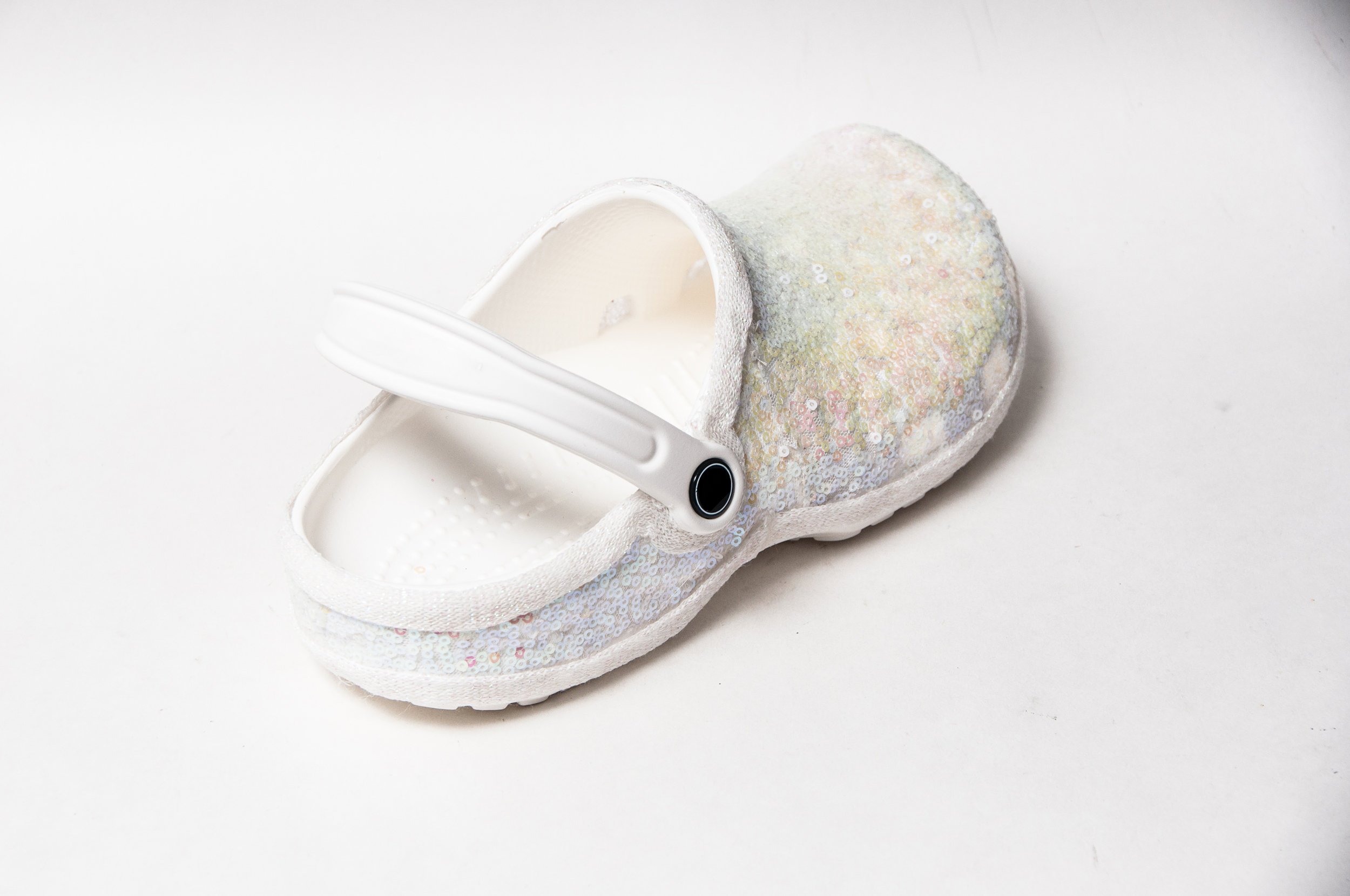 Dessa Crocs är inte bara en vana, de är dekorerad med glitterDe är vita till färgen, vilket betyder att de förmodligen är det ingen kommer ens att märka det under brudklänningenOch detta prestige på gångstigarna kommer att kosta dig, eftersom du kommer att få betala nästan 110 euroMen! Ett bröllop är bara en gång!