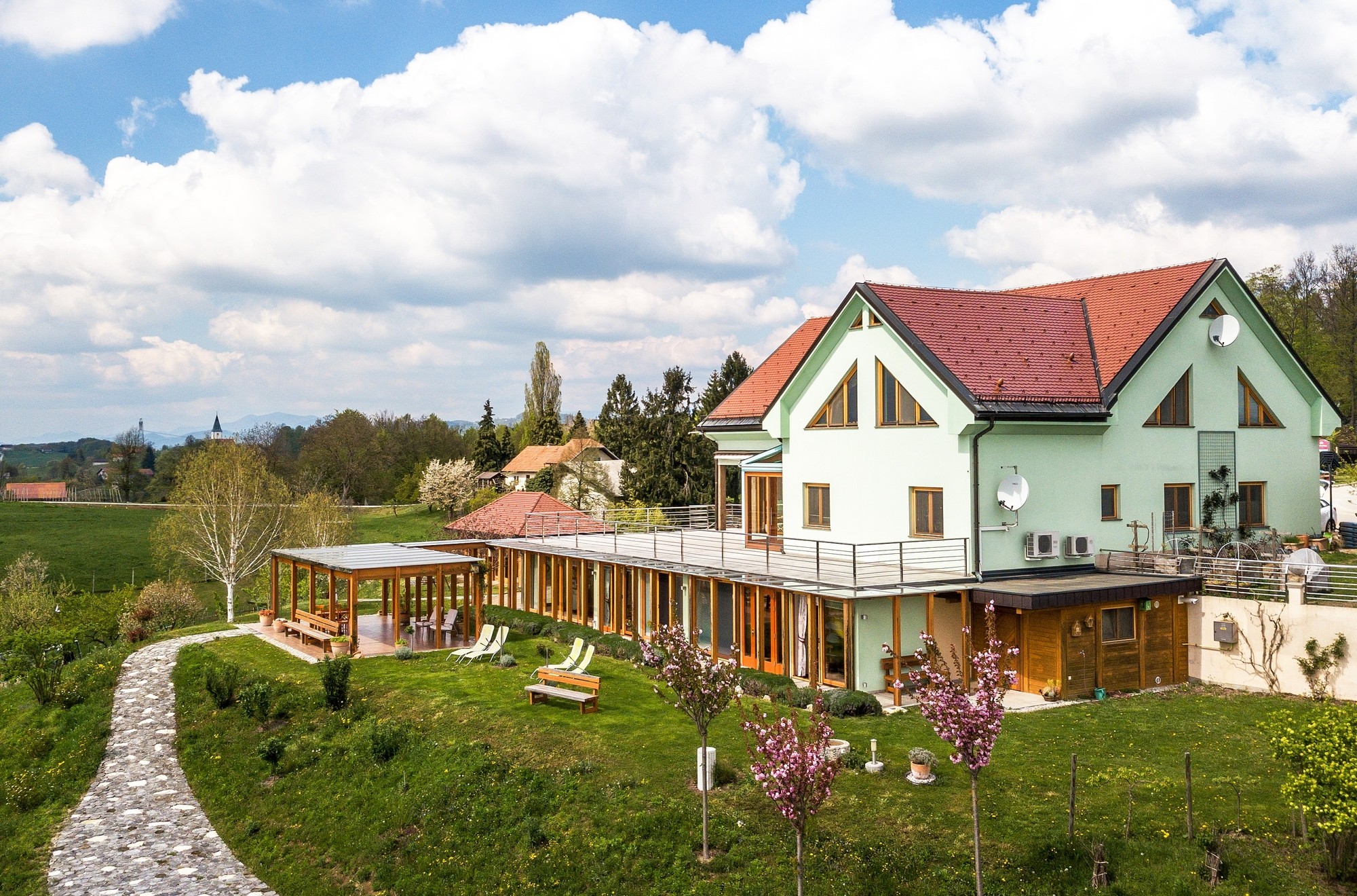 Počitek si lahko tukaj privoščite v prijetnih sobah v podeželskem stilu, ki nudijo sprostitev, udobje ter občutek domačnosti. Zjutraj vas pričakuje okusen slovenski zajtrk, ki vam bo dal zagon in energije za čim boljši izkoristek dneva. Za učinkovito sprostitev ste vabljeni v Angelinin Wellness, kjer se lahko sproščate ter razvajate svoje telo v savni in masažni kadi z dišečimi kopelmi. Ob vročih dneh se preprosto osvežite v zunanjem plavalnem bazenu in hkrati uživajte v čudovitem panoramskem razgledu na okolico. Z igranjem na gong och glasbene zvončke se lahko z mislimi poglobite sami vase in tako doživite osebno transformacijo. V krušni peči och igen grilu pa si lahko spečete kaj užitnega in okusnega, da okrepite svoje telo ter razvajate svoje brbončice.