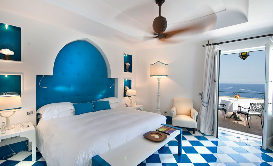 Villa TreVille det är italienskt boutiquehotell vid kusten Amalfi, som erbjuder en vacker utsikt över den färgstarka staden Positano och det kristallklara havet. Amalfikusten har varit ett populärt resmål för den fashionabla eliten sedan 20-talet av förra seklet, och de romantiska hotellen på dess klippor besöks varje sommar av de mest kända modellerna, dansare, musiker, målare, skådespelare, författare och andra älskare av det vackra och prestigefyllda. Hotell Villa TreVille, omgiven av vackra Medelhavsvegetation och lummiga trädgårdar, där privata terrasser och simbassänger, har varit en destination i decennier, där världens kultur- och modeelit samlas. Hotellets interiör kännetecknas av sofistikerade möbler, prestigefyllda målningar och skulpturer, rika material, färgglada medelhavskakel och en trevlig färgpalett. Rummen domineras av vita, blå och guldfärger och de vita väggarna fungerar som dukar för fina detaljer som lyser upp interiören. Varje utrymme i hotellet den är unik och fungerar som en speciell del av ett stort konstverk, som kan ses i sin helhet nedan.