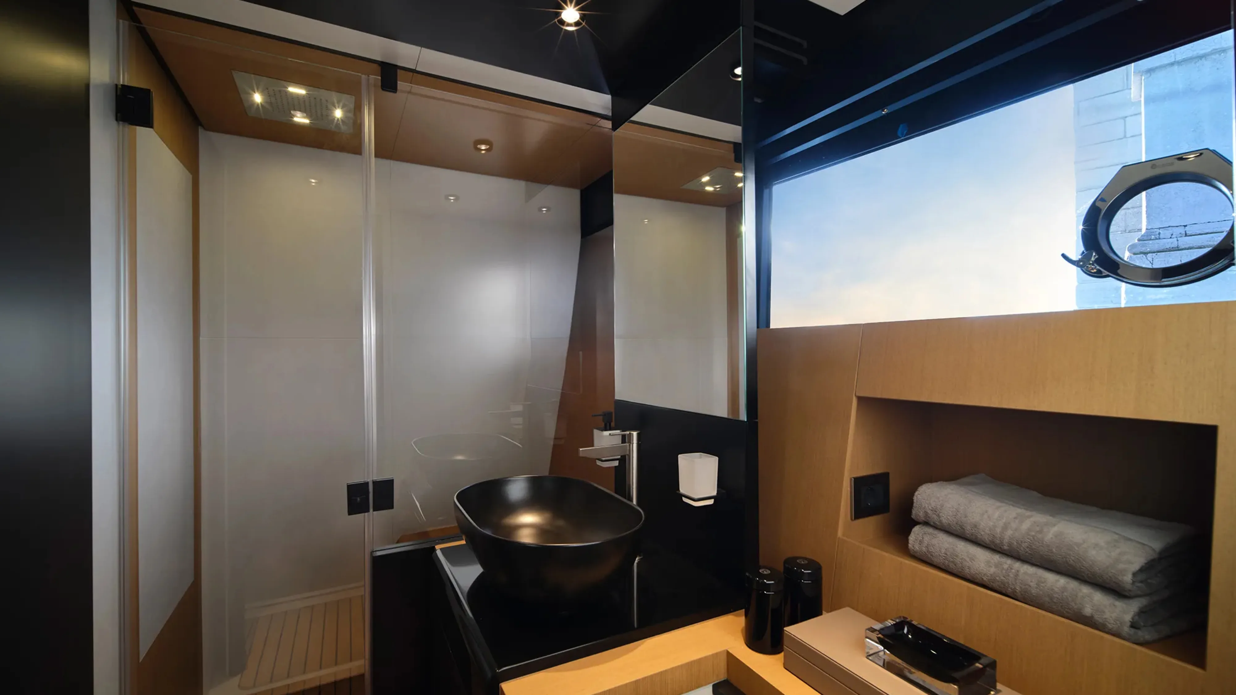 Masterkabinen, lyxigt sträckt över hela fartygets bredd (5,6 meter), erbjuder en king size-säng, en privat lounge och ett badrum med glasväggar som blir mjölkiga med en knapptryckning. Dessutom erbjuder wallywhy100 ytterligare två gäststugor – en med dubbelsäng och en med två enkelsängar. För ännu mer bortskämd finns det en hydraulisk badplattform och gott om solstolar, perfekt för solnedgångar som får dig att vilja stanna.