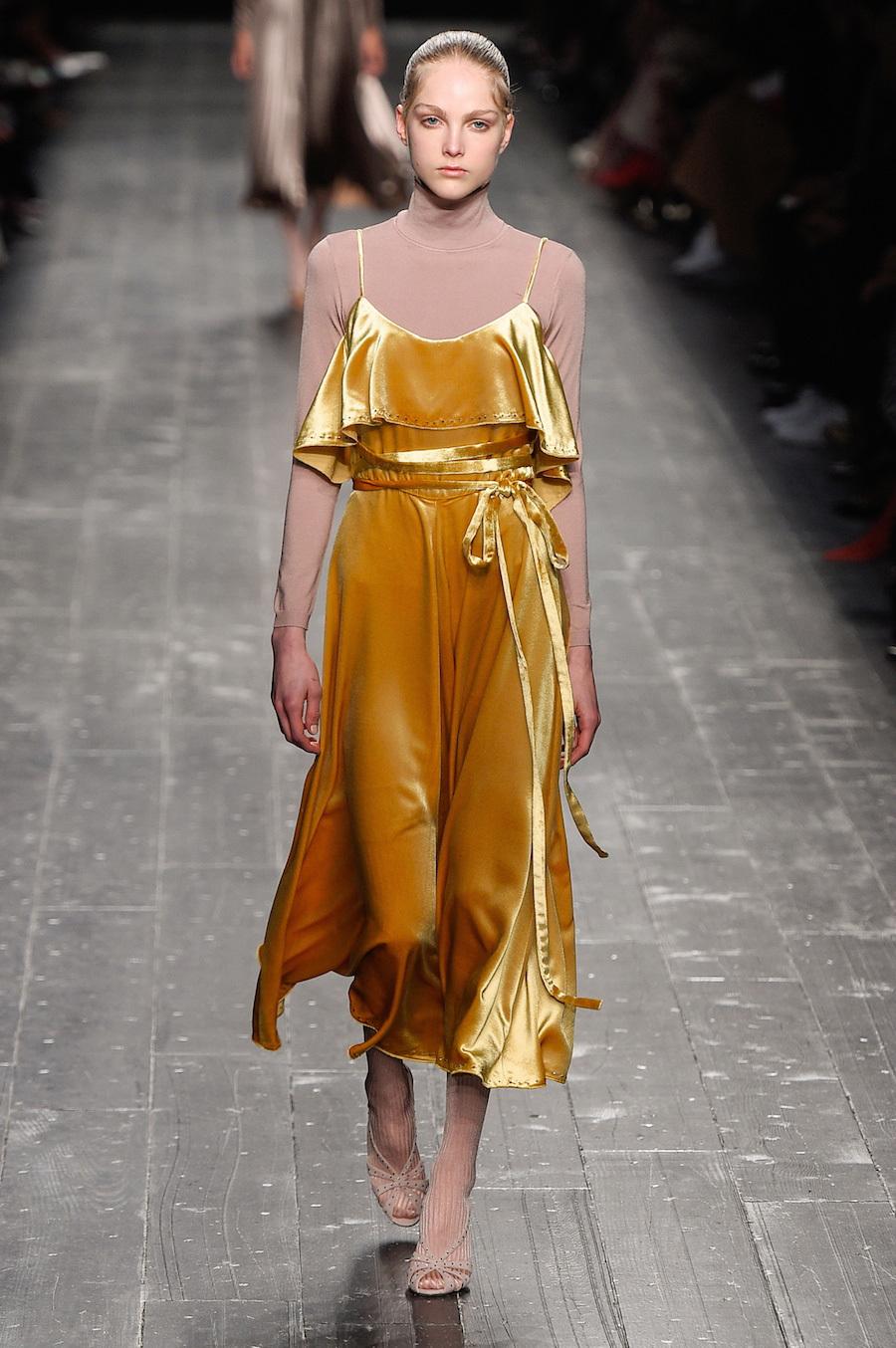 Burberry, Michael Kors in Mary Katrantzou nam za to sezono ponujajo najbolj dekadenten tekstil – brokat je svetleč in strukturiran do te mere, da je prav zares videti kot zbita kovina.
