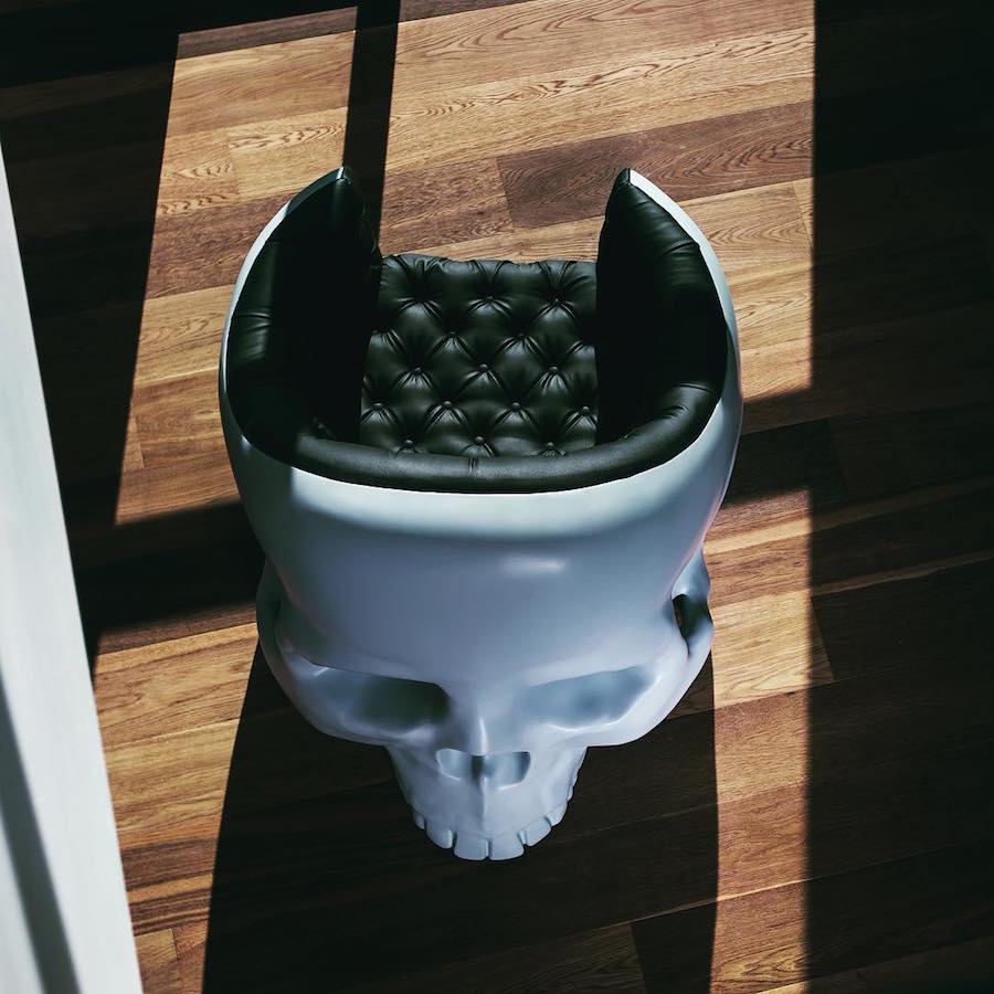 Alla de största skurkarna i filmerna hade speciella stolar som ytterligare betonade deras ondska. Om du vill ha en sådan bit hemma, föreslår vi att du överväger fåtöljen av den parisiske designern Gregory Besson, som gjorde en fåtölj i form av en dödskalle. Att sitta eller inte sitta i den, det är inte frågan här!