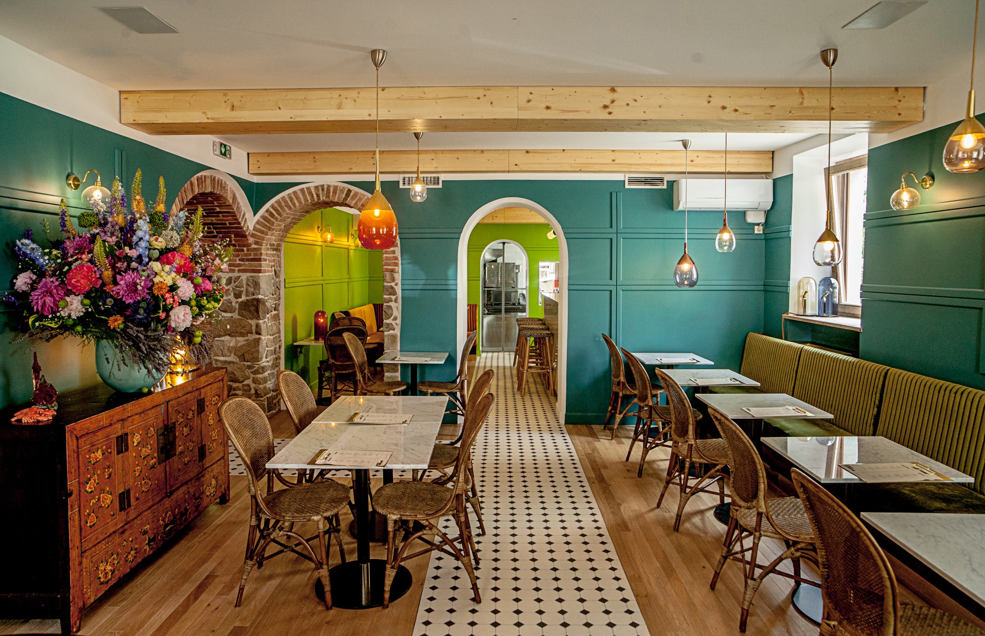 Tretja enota je odprta kuhinja. Dosledni opazovalci si tam lahko prižgete svoj resničnosti šov v živo. Vmes vilice zabodete v kaj na vonju izdatnega in po okusu presenetljivo razigranega ter si na prtiček zapišete kakšno mentorsko spodbudo o tem, kako se kuha, je in v čem se uživa danes. Bistro in restavracija sta odprta od 18.00 do 23.00.