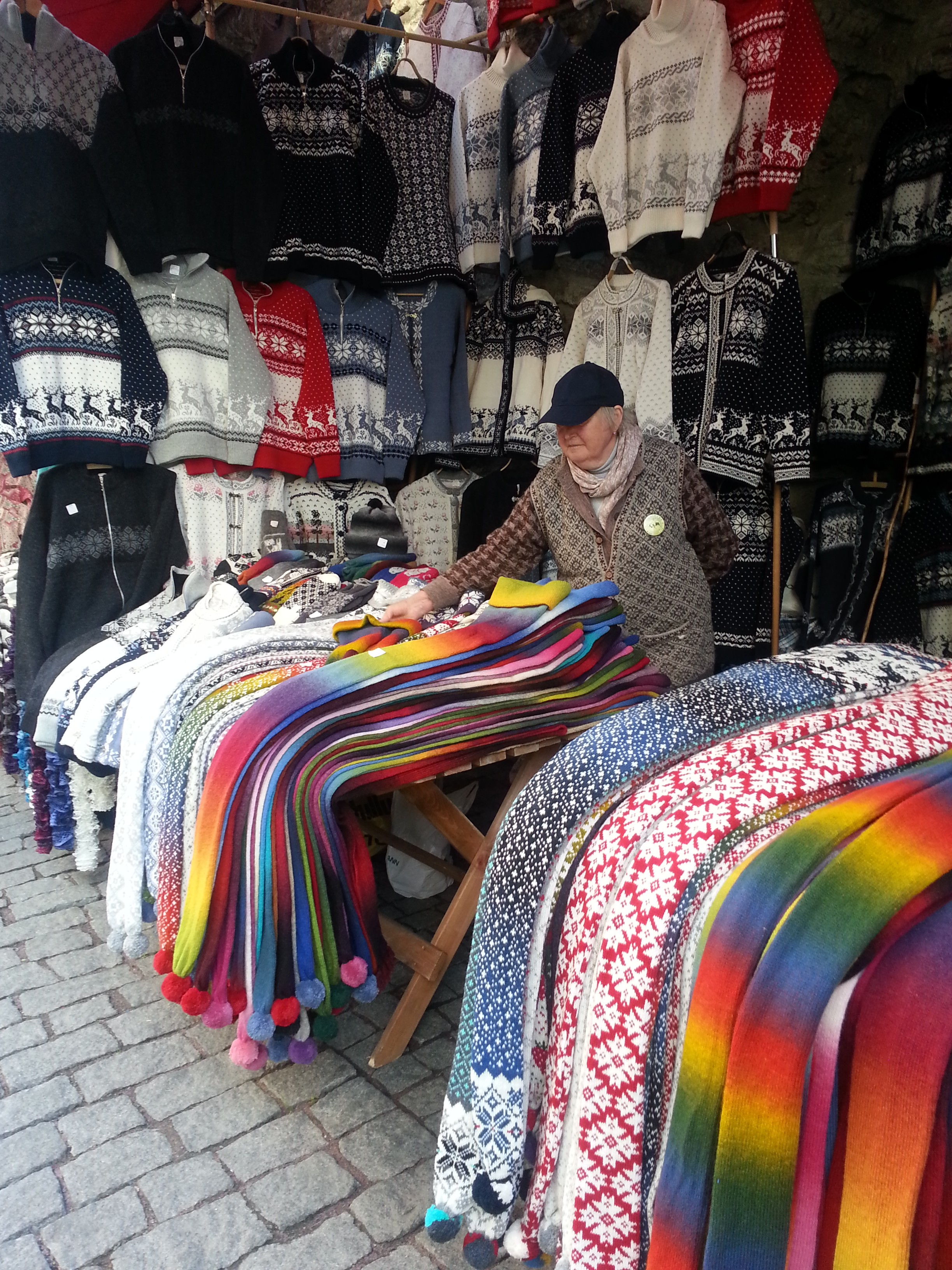 Kar nekaj izdelkov pa lahko najdemo tudi med sprehodom po ozkih uličicah srednjeveškega mestnega jedra, ki je bilo po temeljiti prenovi po osamosvojitvi Estonije uvrščeno na UNESCOv seznam svetovne kulturne dediščine. Ob delu ohranjenega mestnega obzidja na koncu nakupovalne ulice Viru predvsem ruske ženske vsak dan na stojnicah prodajajo čudovite pletene izdelke s tipičnimi skandinavskimi vzorci, ki so v zadnjih letih zopet zelo modni. Volna je debela in težka, zato so jopice, puloverji, kape in rokavice najboljša zaščita pred nizkimi temperaturami na severu Evrope. Nasproti stojnic več prodajalnic ponuja zanimive in cenovno zelo ugodne izdelke iz platna, ki veljajo za ene najbolj priljubljenih spominkov iz Estonije. Srednjeveška uličica Katarina Käik je zanimiva zaradi ponudbe estonskih izdelkov in svojega srednjeveškega šarma.