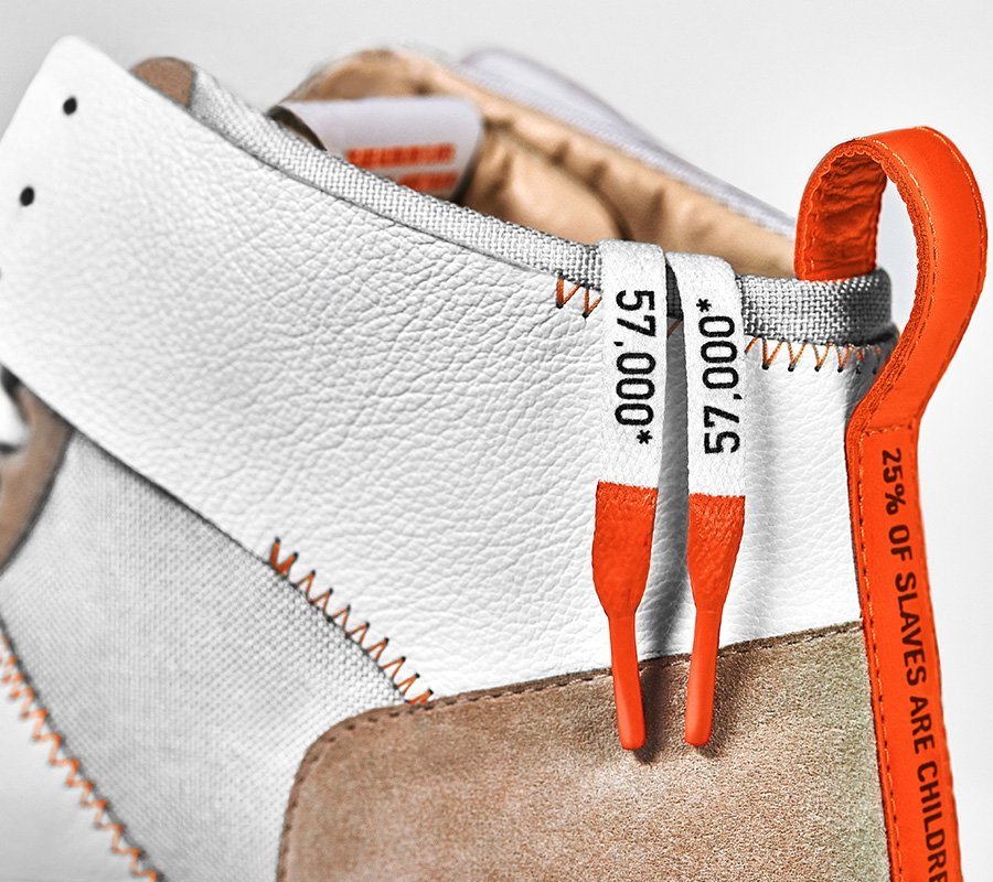 Kampanja, ki jo je spodbudila fundacija Thomson Reuters, želi vzbuditi zavedanje o temni plati široke potrošnje. Superge iz usnja, semiša in mrežice, ki so bile izdelane posebej za potrebe te akcije, razkrivajo grozovita dejstva o moderni obliki suženjstva in prisilnem delu.
