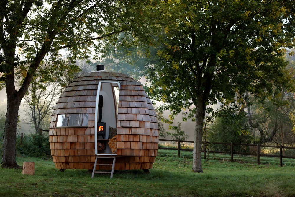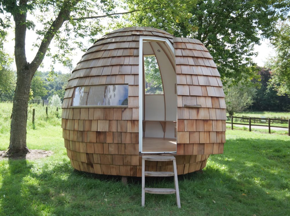 The Escape Pod lahko odigra vlogo samotnega otoka, saj boste v tej mini hišici lahko izolirani od zunanjega sveta. Bivak, ki spominja na jajce, sestavlja ogrodje iz brezove vezane plošče ter evropskega hrasta. Zunanjost je oblečena v cedrove skodle, kar videz Escape Poda rahlo približa stoječemu storžu.