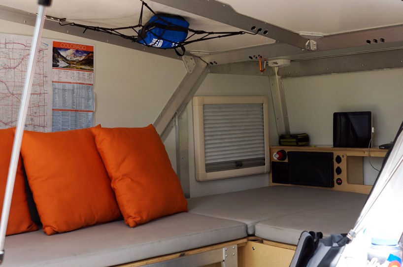 Svojo baterijo polni med potjo. V notranjosti najdemo USB-priključke, škatlo z orodjem, na strehi pa prtljažnik za kolo in dodatno prtljago. Skriva tudi kuhinjo z desko za rezanje in štedilnikom.