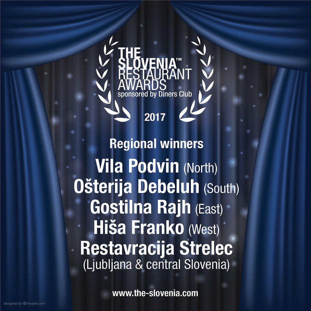 V okviru izbora najboljših restavracij v Sloveniji – The Slovenia Restaurant Awards pod sponzorstvom Diners Cluba za leto 2017 je na Fužinskem gradu v Ljubljani potekala podelitev priznanj in razglasitev regijskih zmagovalcev ter zmagovalca strokovne komisije. V založbi The Slovenia so po nekajmesečnih pripravah strokovne komisije in skoraj dvomesečnem glasovanju Chefs&Foodies Akademije ter ljudstva v naboru 140 predlaganih restavracij dobili finaliste in zmagovalce regije ter zmagovalca po oceni strokovne komisije.