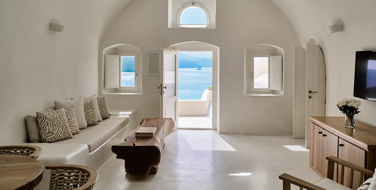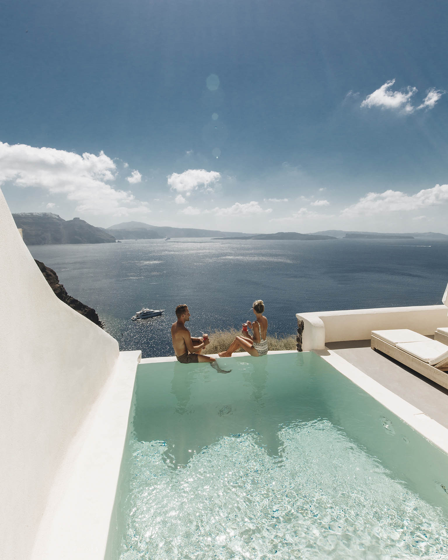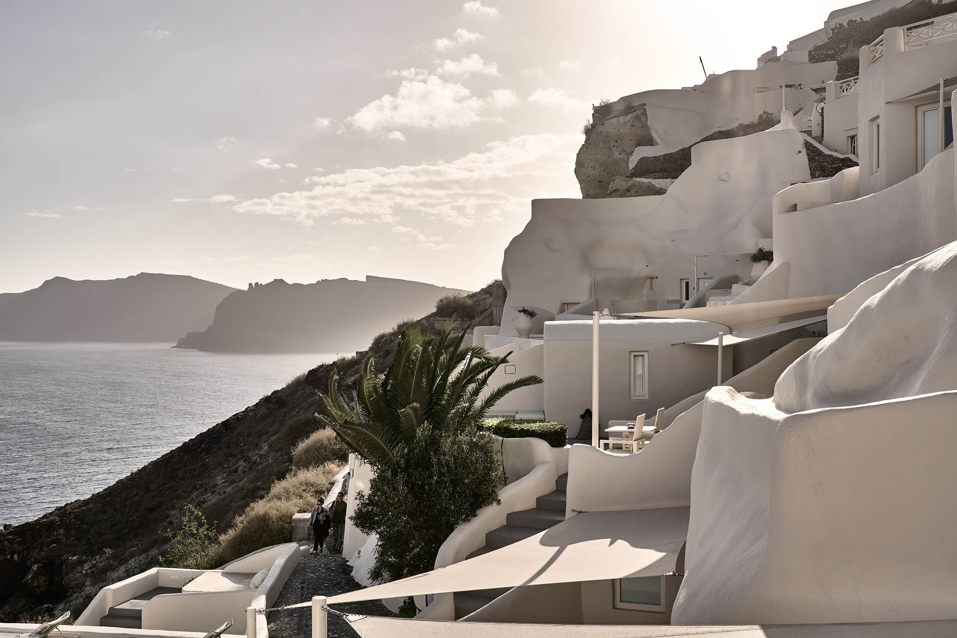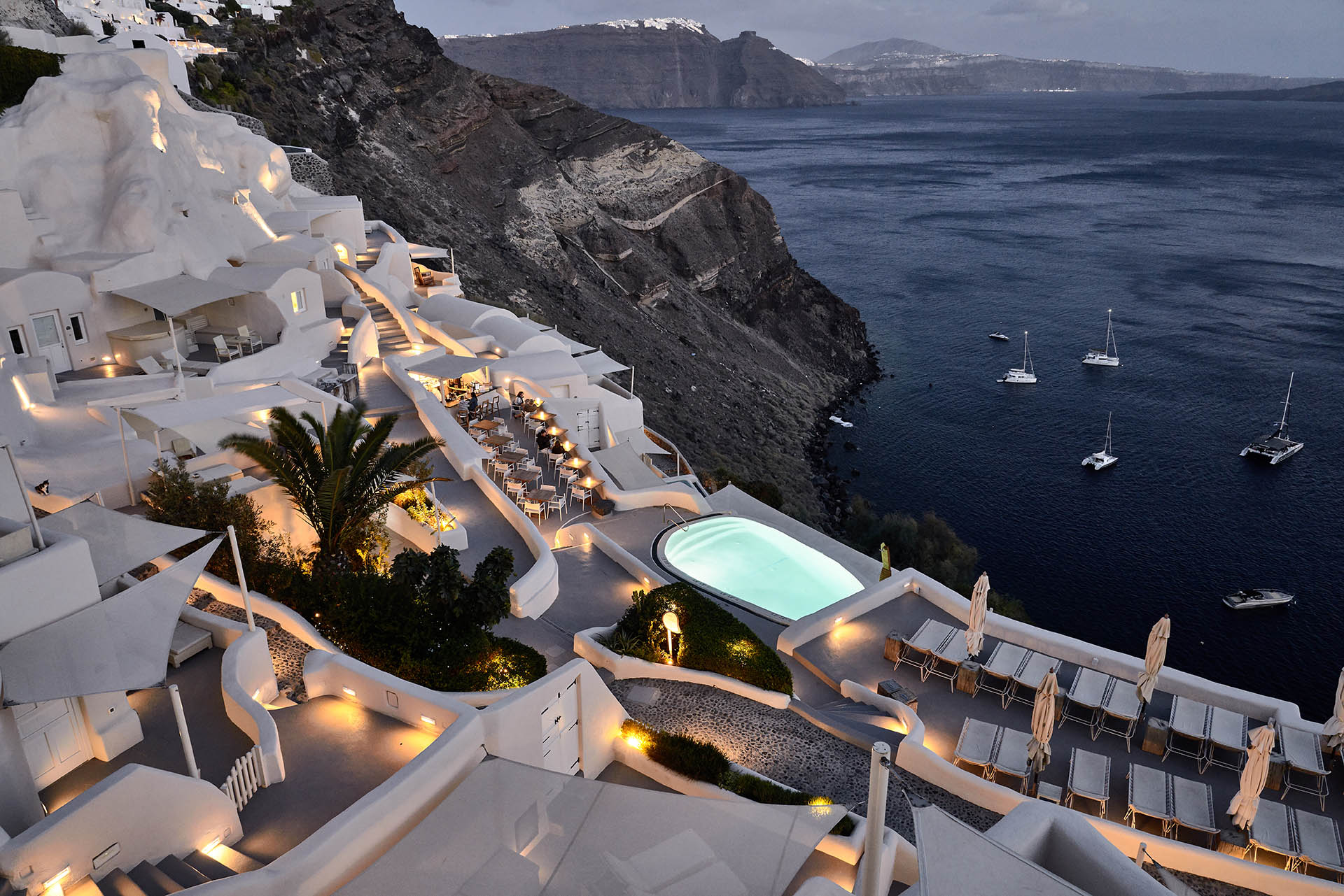Čeprav na Santoriniju res ni težko najti lepega razgleda, ima Mystique enega najbolj ‘instagramovskih’ razgledov, za to pa je zaslužno opazovališče na robu kaldere na najjužnejši točki Oie. Gostje se lahko tako potopijo v prelivni bazen (infinity pool) in opazujejo dramatične vulkanske klife in bleščeče južno Egejsko morje. Prostorne sobe so ‘izklesane’ neposredno v pečino in imajo zasebne terase s pogledom na morje. Vrhunec je bar ob bazenu s svojimi koktajli, ki se ujemajo s sončnim zahodom, ki vam preprosto vzame dih.