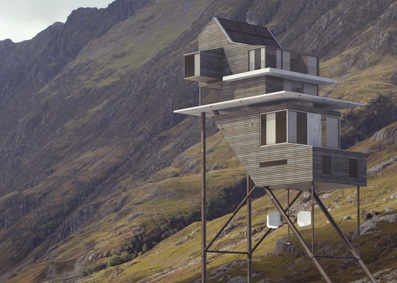 Težko je najti pridevnik, ki bi opisal to super norost francoskega vizualnega umetnika Benoita Challanda, ki je zmiksal vizualni jezik Le Corbusierjevih hiš in skulptur Santiaga Calatrave. Nastala je vizija futuristične samozadostne hišice na hoduljah – morda bi bil boljši izraz ”na kolih”. Kakorkoli, čeprav gre za vizijo, je lokacija hišice, poimenovane Roost House, jasna – na Škotskem bo in to sredi neokrnjene narave.