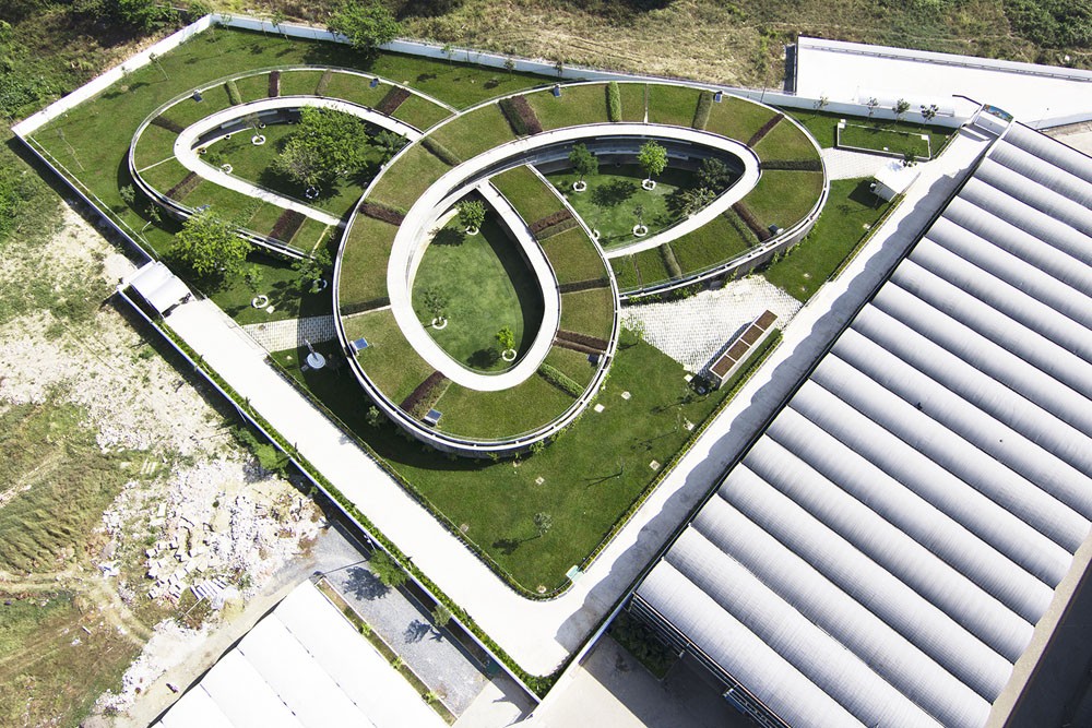 Zanimiv vrtec v Vietnamu, ki poudarek daje kmetijstvu, se ponaša z zanimivo obliko ozelenjene strehe.