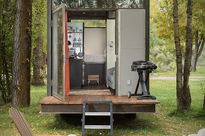 Hišica Wedge RV stoji na kolesih, tako da jo lahko peljete, kamorkoli želite. Manjka vam samo še dober žar in dva stola, če imate družbo.