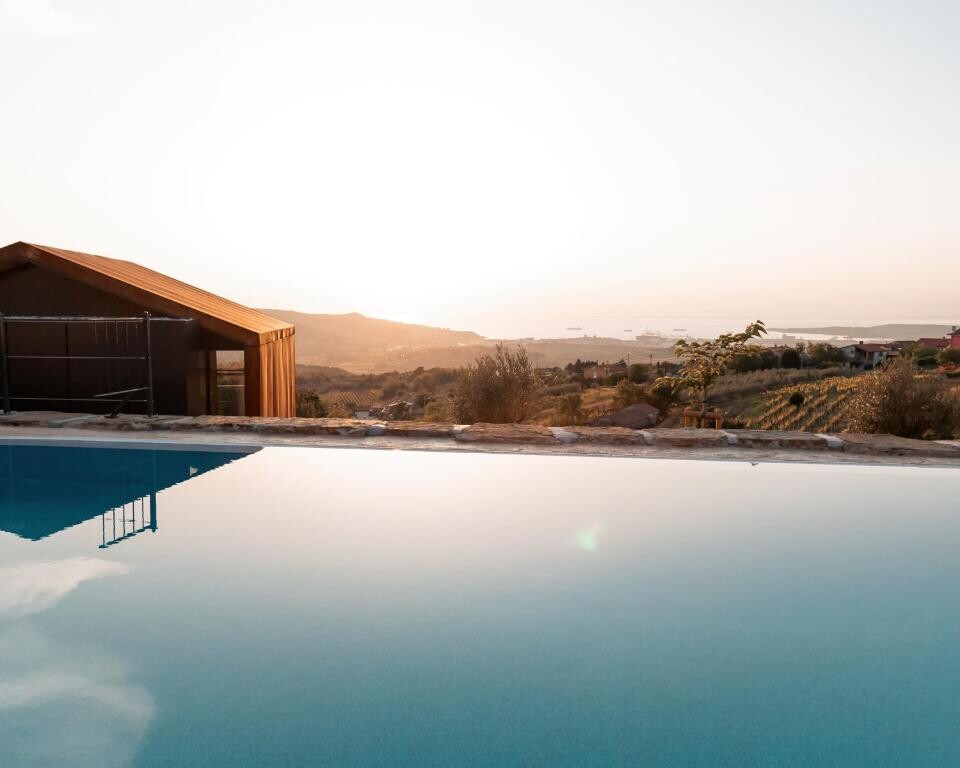 Wine Paradise – Glamping Resort ponuja razkošno namestitev z zasebnim bazenom, teraso, restavracijo in barom. Vila ponuja brezplačen WiFi in zasebno parkirišče. Vsaka enota je opremljena z balkonom, klimatsko napravo, televizijo z ravnim zaslonom in zasebno kopalnico s tušem ter brezplačnimi toaletnimi potrebščinami. Vse enote ponujajo tudi teraso s pogledom na morje.
