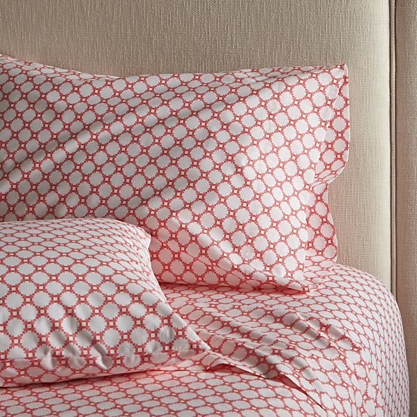 Sončni koralni geometrijski vzorci na posteljnini se bohotijo in kraljujejo na veliki postelji. Močni, nesramežljivi, glasni, udarni vzorci londonske oblikovalke Genevieve Bennett so prava poživitev spalnice. Močni pastelni odtenki v koralno beli kombinaciji se čudovito dopolnjujejo z belim pohištvom ali belimi stenami v sobi.