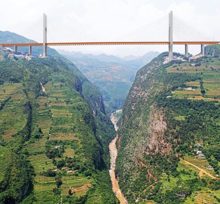世界上最高的桥梁在中国落成。这连接了云南省和光州省,因此他们之间的旅程缩短了多达三个小时。杜格有半公里多高。