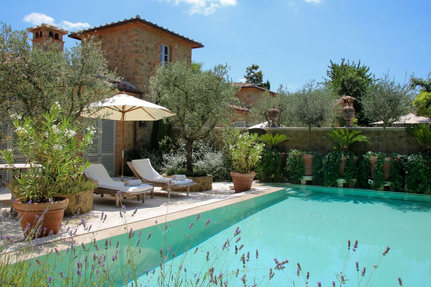 托斯卡纳的别墅已经很特别了,尤其是如果它们拥有泳池大楼的话。 维罗纳城堡 位于蒙塔尔奇诺附近,享有托斯卡纳乡村的壮丽景色。这座中世纪城堡改建为豪华别墅,拥有配有古董家具的豪华客房和套房。客人可以享受带温泉、室外游泳池和顶级美食体验的康体中心。