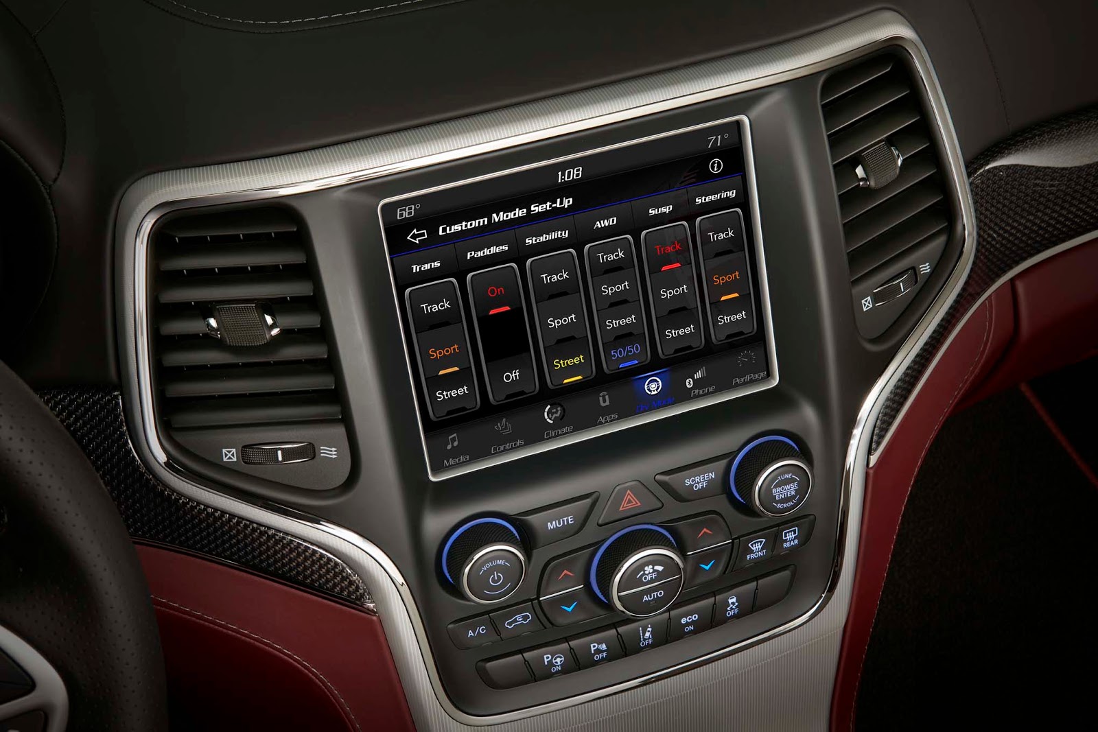 吉普大切诺基 Trackhawk 是吉普大切诺基车型最强大的版本。它由模型提供动力 道奇 Charger 地狱猫 采取 6.2 升 V8 Hemi 发动机,其发展只是 717 马力(527 千瓦) 和874牛米的扭矩。这使其能够从 0 公里/小时加速到 100 公里/小时 3.5秒后 和最终速度 290公里/小时。动力通过改进的八速自动变速箱传输到所有四个车轮 扭矩过滤器.