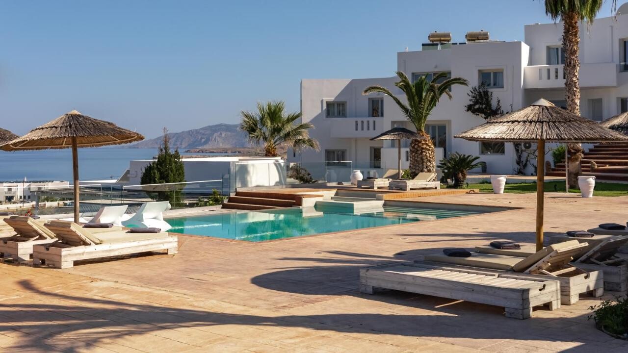 Arkasa Palace酒店距离Arkasa的沙滩仅有几步之遥,享有宁静的氛围并享有大海全景。宽敞的酒店客房和套房装饰典雅,风格现代,设有俯瞰大海的私人阳台。