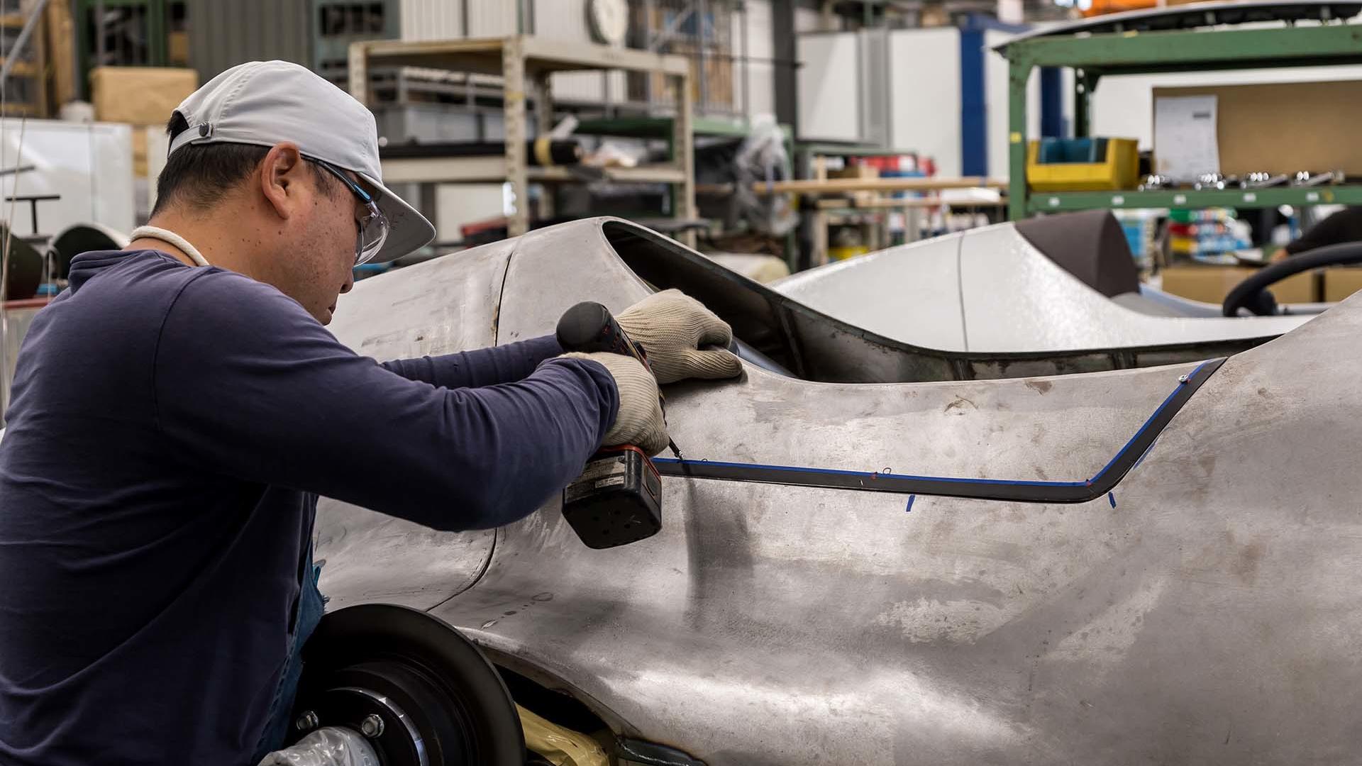 旧与新相遇,手工锻造的车身与 Prototype 9 的激光切割框架相遇。动力传动系统也完全现代化。这驱使着他 电动马达 和 148马力。听起来不多,但当你考虑到这辆车的重量只有 890公斤,只需要一辆赛车 5.5秒,这样数字 100 就会出现在车速表上。如果我们再加上窄轮胎、板式悬架和刚性车轴,我们已经感觉自己像来自过去历史时代的赛车手了。