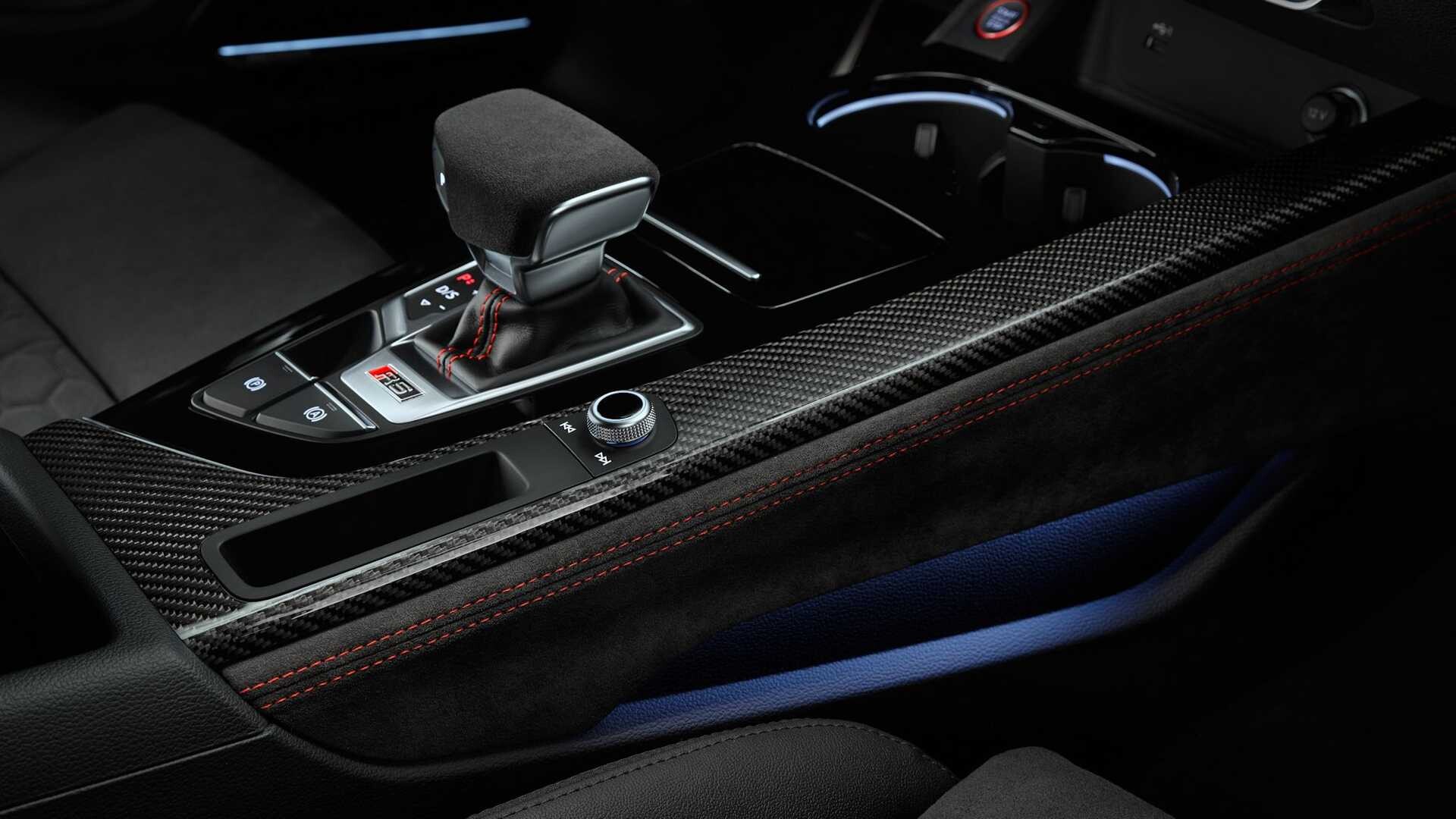 新款RS5的自动变速箱将被修复 8档 移动得更快。竞赛包 10毫米 降低底盘,即使是额外的 10毫米 但由于自适应悬架,它可以降低。奥迪RS5 Racing的外观很快就会引起人们的注意,因为奥迪增加了一些高光黑色的元素和一些由碳纤维制成的元素,例如前后导流板和后视镜外壳。引擎盖下方隐藏着同样由碳纤维制成的发动机保护盖。内饰采用纳帕皮革和独特的运动座椅,带来同样的运动活力。 Alcantara 面料和对比鲜明的红色缝线进一步强调了运动气息。该车型还将提供“Competition”和“Competition Plus”套件 奥迪RS4前卫.