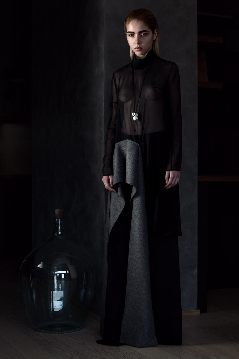 在第一世界中,一切事物都是基于色相的层次,真正只是肉眼所见的,所以 剪影作为该系列中视觉上最暴露的元素, 他们模仿城市建筑的几何形状。在另一个世界,现实是镜像的 通过感官、知觉、触觉和直觉。在这个世界上,我们不去思考,而是通过收藏来体验 女巫造型手册 斯洛文尼亚时装设计师 简杰·维德克 以强烈强调的纹理、模仿树皮结构的对比材料层压以及高品质天然材料(例如 丝绸、棉、羊毛和黄麻,与身体融为一体,不限制身体。