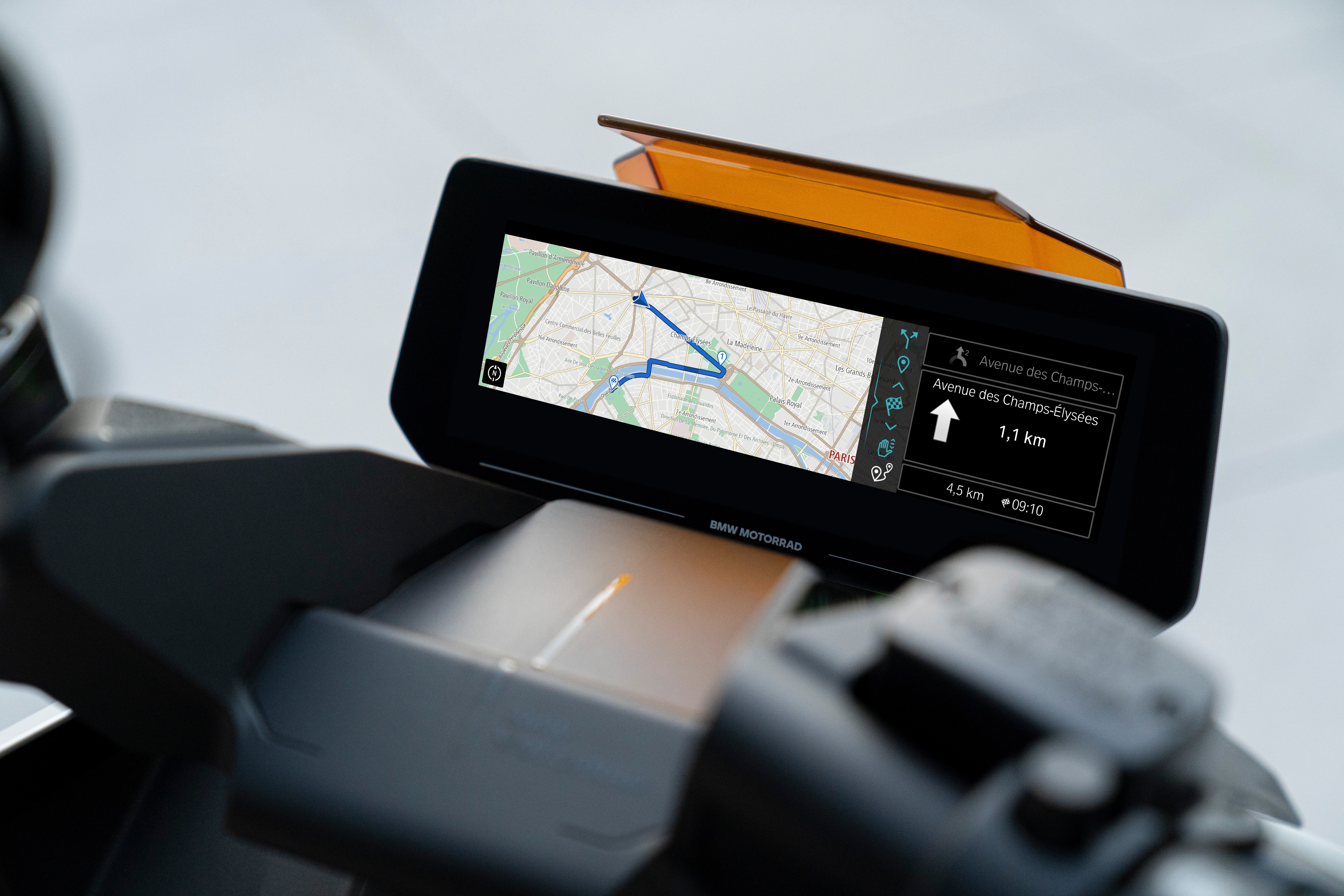驾驶员通过智能手机连接到 CE 04。其 10.25 英寸屏幕是踏板车领域有史以来最大的屏幕,充当骑手数字和模拟世界之间的接口。 宝马 尚未透露隐藏在驱动它的技术中的所有细节 CE 04。因此,新型踏板车的容量和行驶里程尚不清楚。