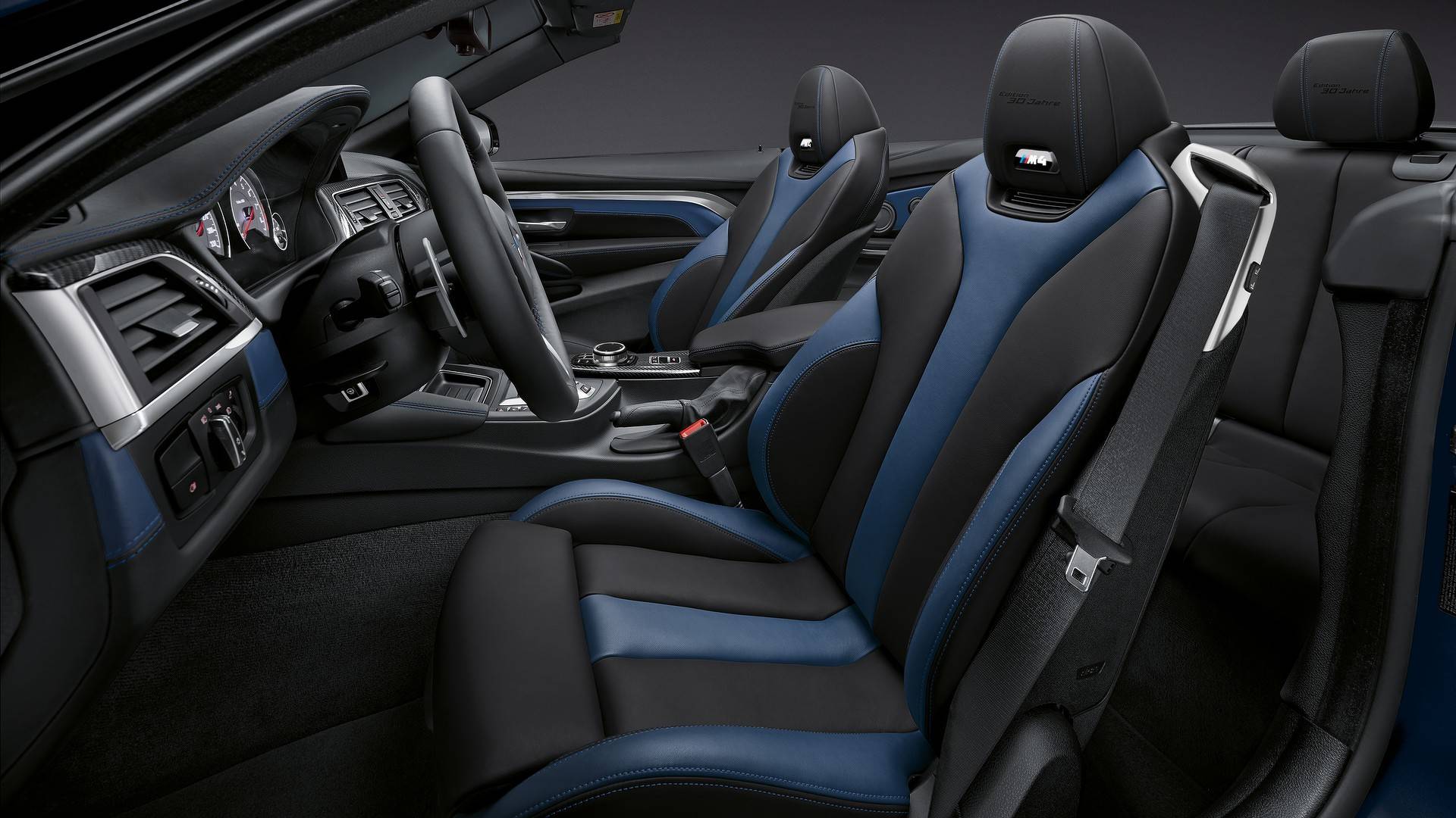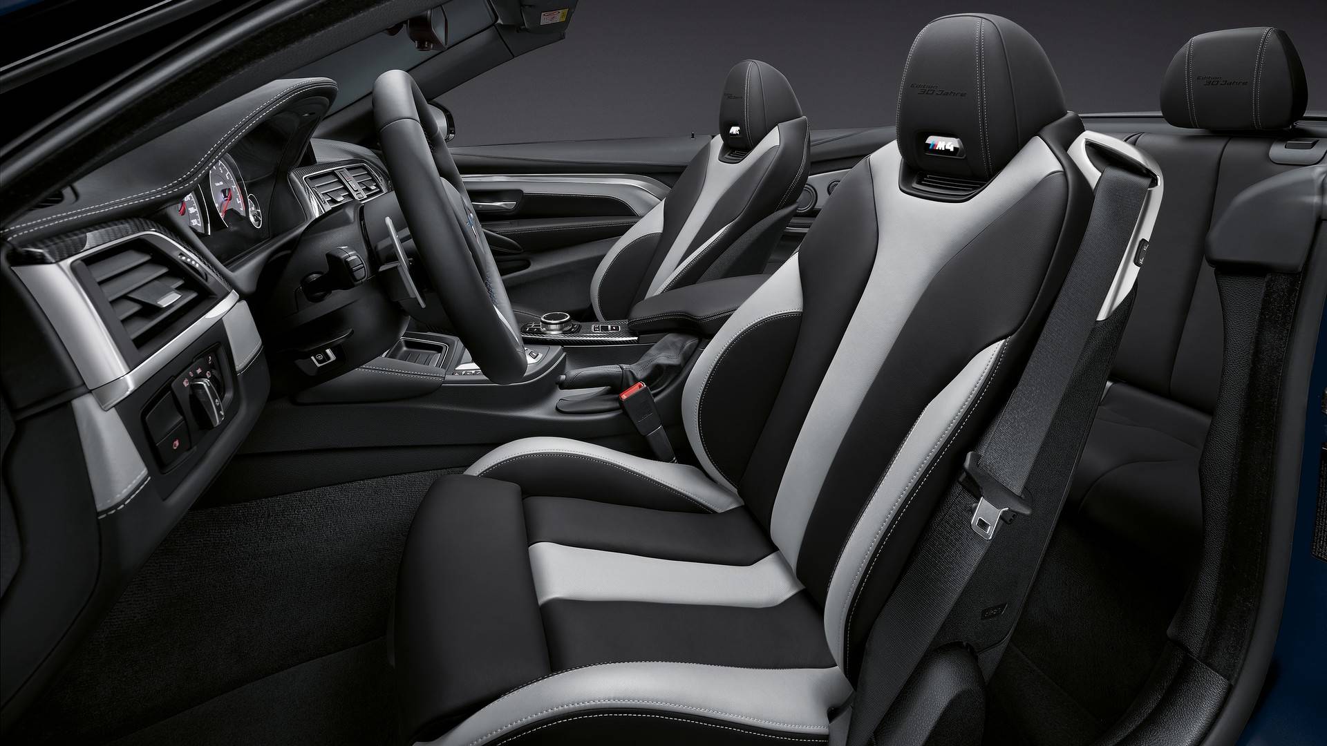 内部覆盖着 美利奴皮革 并与汽车外部的颜色相匹配。门槛上的 30 Jahre Edition 标记清晰可见。您还会在仪表板上看到相同的铭文,旁边列出了汽车的序列号。这款特别版的宝马 M4 敞篷车必定会大受欢迎,如果你是这 300 名幸运儿之一,你一定会成为周围人羡慕的对象。