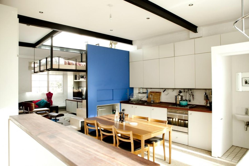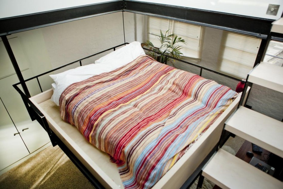 这套位于伦敦市中心的公寓最有趣的是空中卧室,位于屋顶露台的半路上。您还注意到餐厅里的浴缸吗?