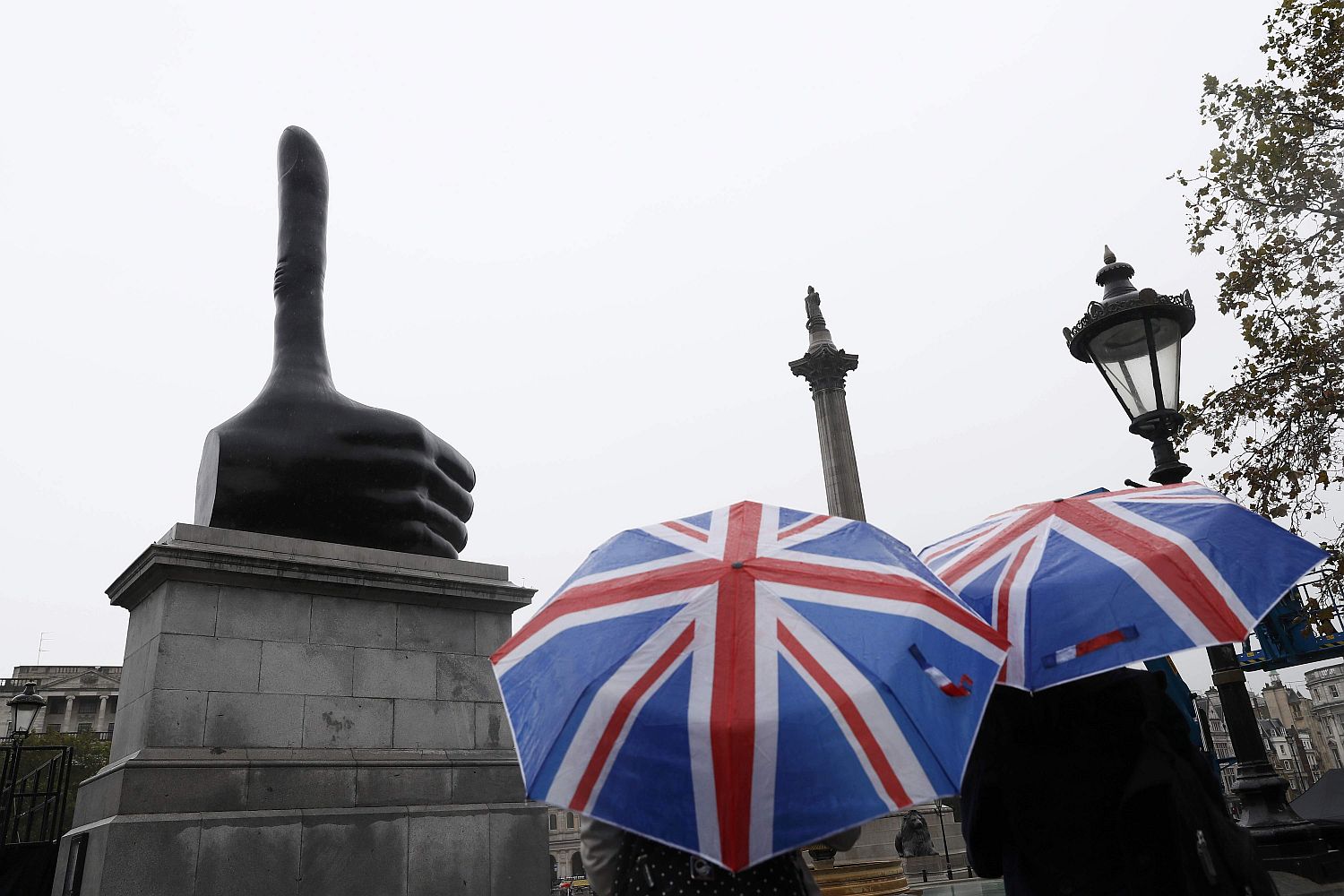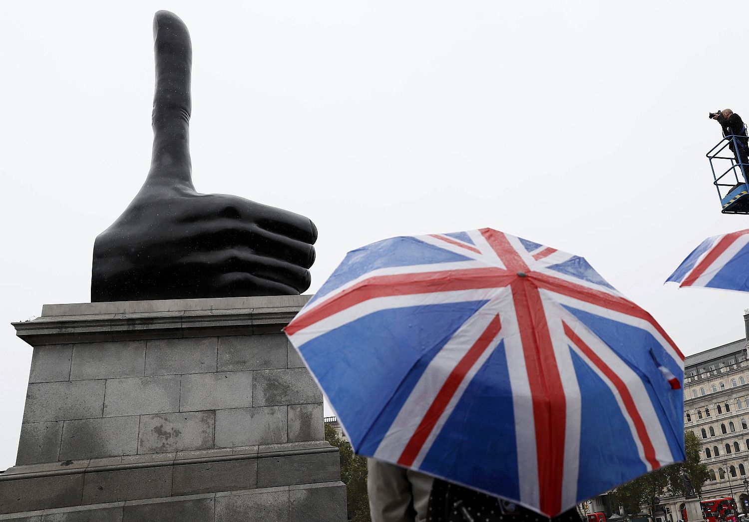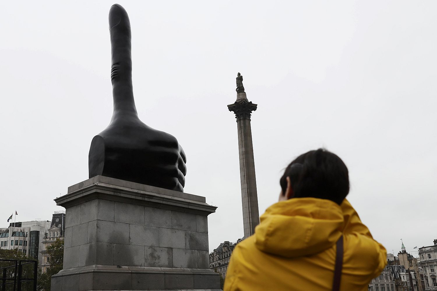在伦敦的特拉法加广场,第四基座上的场地——一个自 1999 年以来一直用于举办临时艺术装置的空基座——获得了巨大的赞誉,这尊“真好”雕塑与三座军事纪念碑并列。这个表示赞同的手势是艺术家 David Shrigley 的作品。