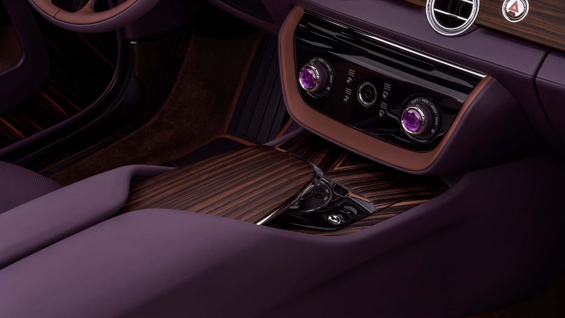 汽车的内饰同样令人印象深刻。深色木材、对比色皮革和……一块手表。是的,你听到的是对的。小时。而且不仅仅是任何手表,而是江诗丹顿手工制作的手表。因为当您可以查看豪华车上的时间时,为什么还要看手机呢?