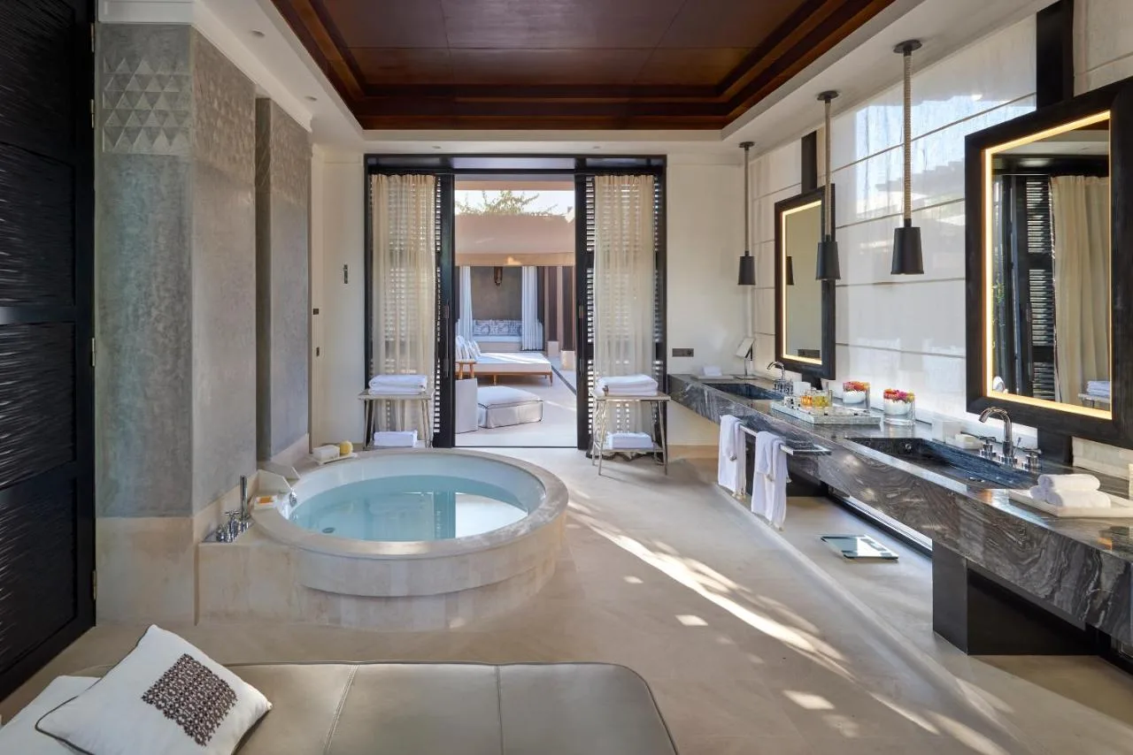 马拉喀什最浪漫的酒店?看看这个! 马拉喀什文华东方酒店 是一家豪华度假村,坐落在占地 20 公顷的橄榄树林和花园中。度假村提供宽敞的别墅和套房,配有私人游泳池和花园,并享有雄伟山脉的壮丽景色。在水疗中心,除了护理之外,您还可以在传统的土耳其浴室中尽情享受。客人可以在酒店的餐厅享用美食,餐厅供应各种国际和摩洛哥菜肴。