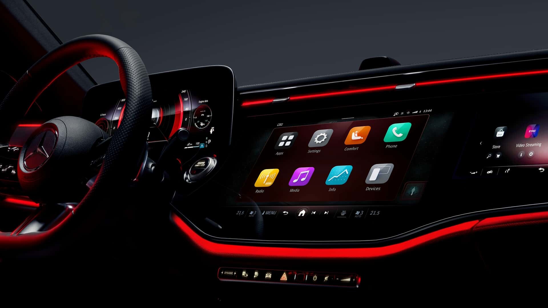 拥抱数字时代,新款 2024 款梅赛德斯-奔驰 E 级车提供第三方应用程序兼容性,允许驾驶员使用“愤怒的小鸟”等娱乐应用程序、Webex 或 Zoom 等视频会议应用程序,甚至使用 Vivaldi 浏览器浏览网页。还包括 TikTok 视频平台,让您可以与关注者分享您的驾驶体验。