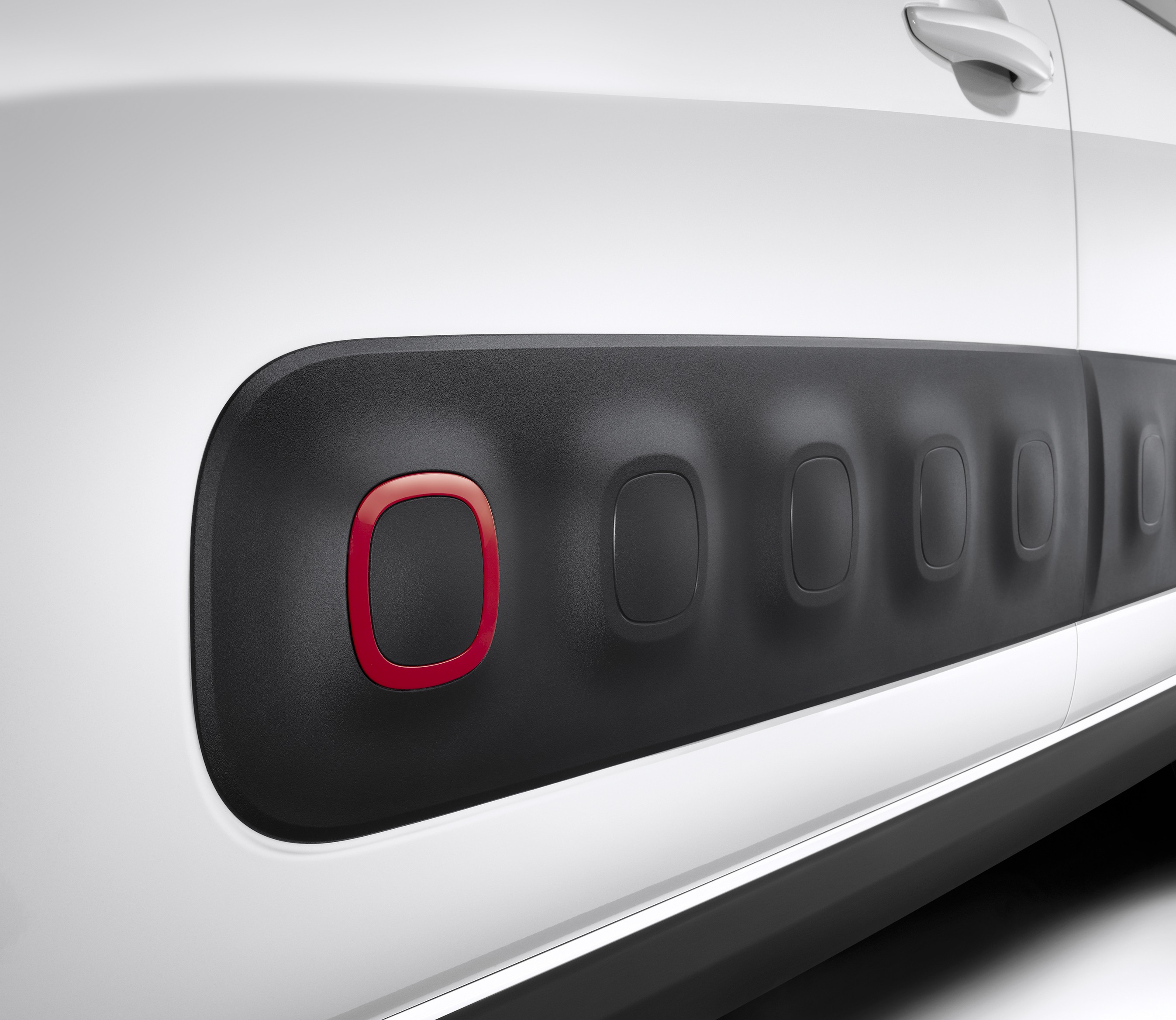 因此,您会注意到车门上有相同的设计元素——AirBump——一种安全气垫,可以在城市停车场保护身体免受用户粗心大意造成的伤害。相似之处还体现在前部,日间行车灯的位置非常高,具有特定的低形状,并且是两级的。后部装饰有 3D 尾灯,与后部的光滑表面略微突出。