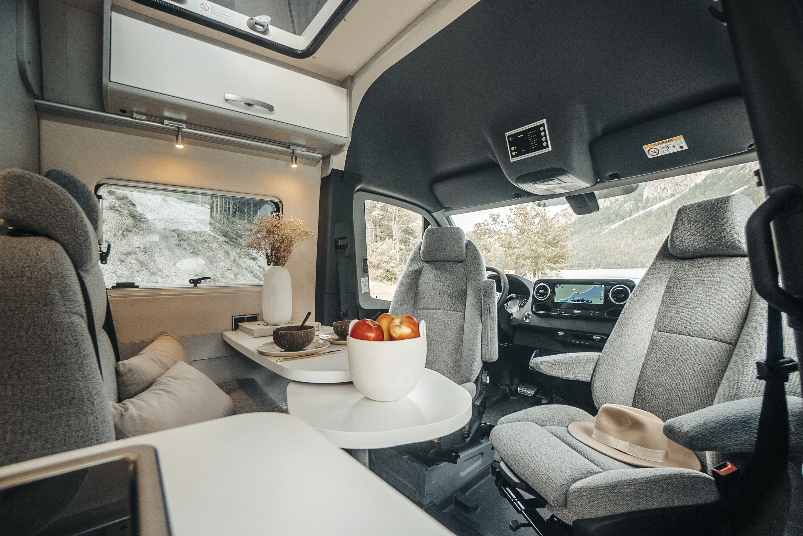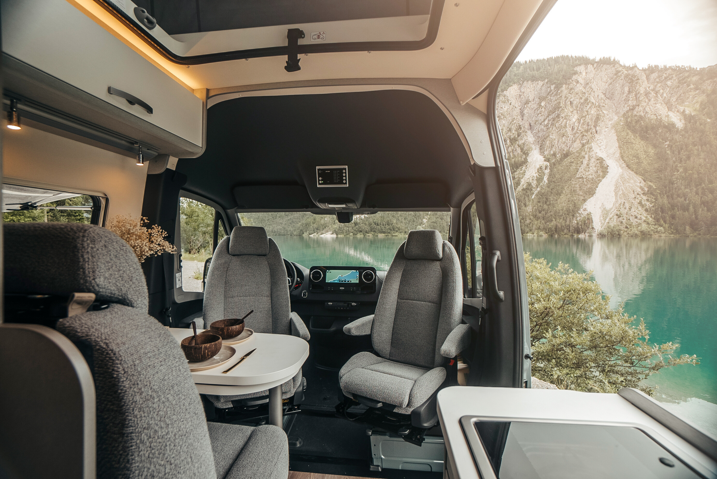 房车内部采用银灰色饰面的时尚家具元素与“Jandia”面料和白色头顶储物柜门相结合,确保了舒适性。全新 200 x 122 厘米天窗配有一张可供两人使用的床、12V 连接和带 USB 连接的 LED 阅读灯,确保即使在路上也能在家里舒适睡眠。这样您就可以快速地从一个地方移动到另一个地方, 海默免费 S 校区 现在配备了强大的 170 马力发动机和标准前轮驱动,以及紧凑的车辆长度。久经考验的 9 速自动变速箱、电动驻车制动器、倒车摄像头和众多驾驶员辅助系统使驾驶房车更加舒适。梅赛德斯-奔驰独有的 MBUX 多媒体系统配有 10 英寸屏幕,负责驾驶期间和驾驶后的娱乐、导航和通信。